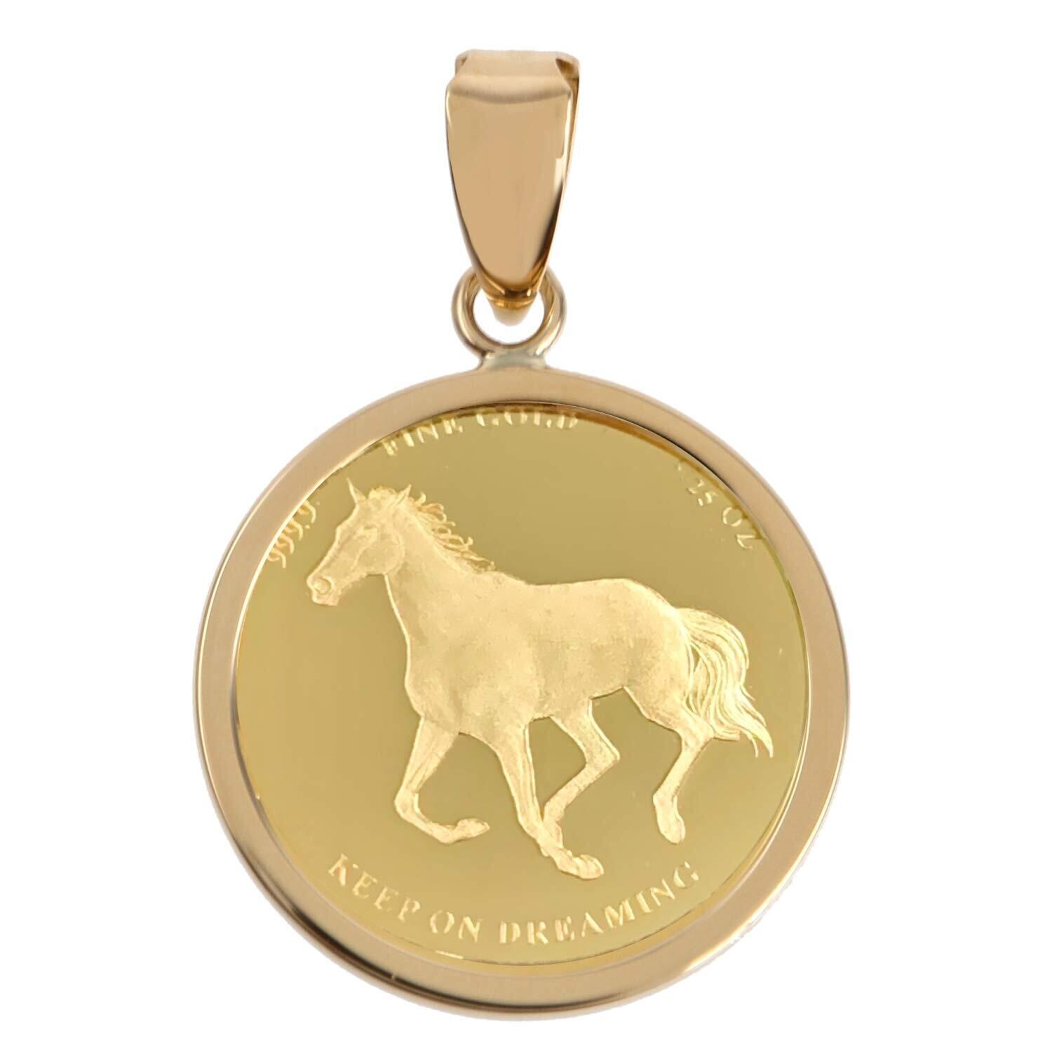 【特価セール】[フェアリーカレット] K24/18 コインペンダント 馬&馬蹄 1/25オンス 純金コイン K18フレーム 刻印入り