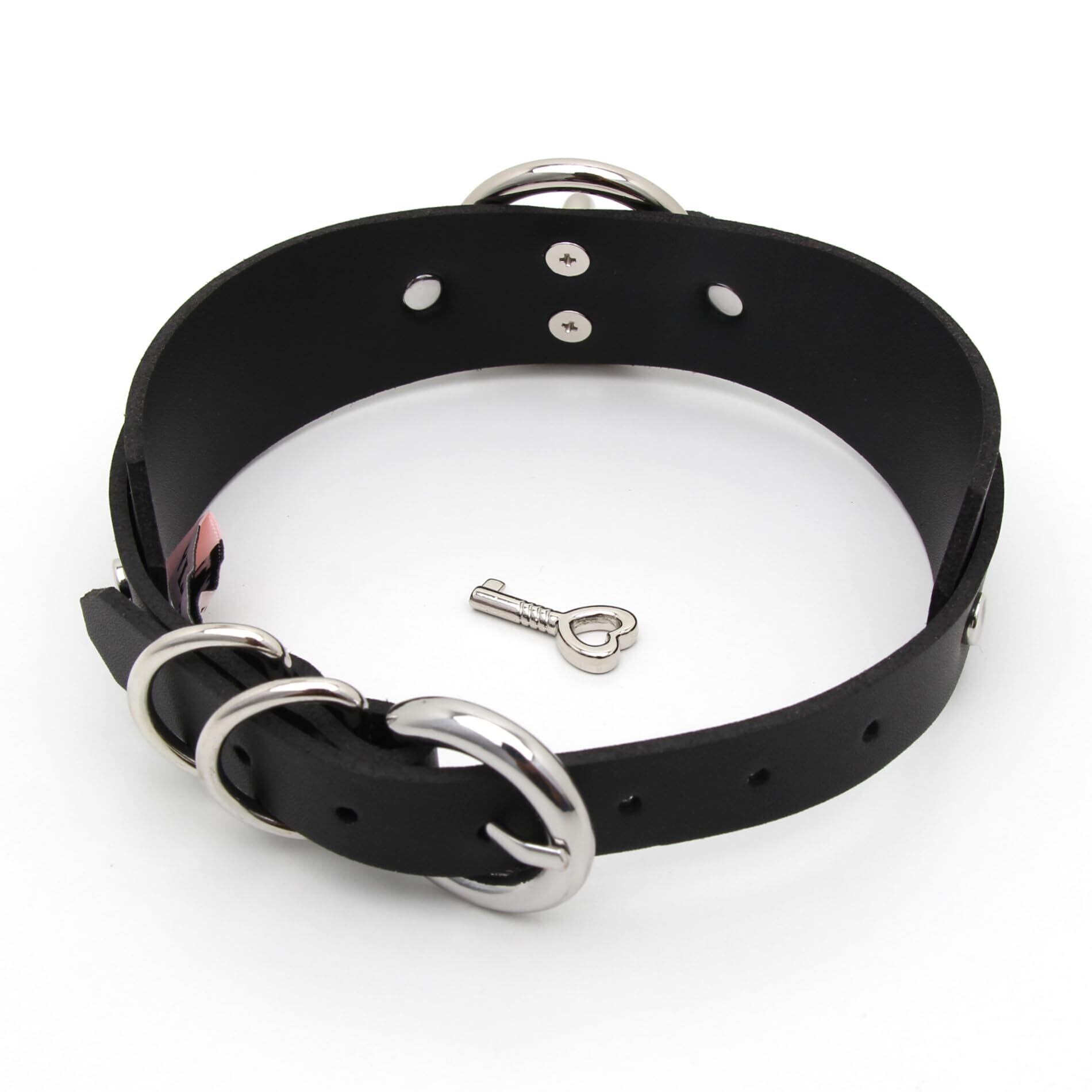 本商品は首29-36cmを適用のため、首サイズをご確認ください。 手加工でレザー上の穴はパチングニッパで一個一個加工し、合金部分も手で取り付けました。 細かいところも気を遣いました。 素材レザーはしっかりで表面がなめらかです。手触りも柔らかいです。上段革のベルト幅は1.5CMで下層のベルト幅は3.0CMです、違う幅のベルトを重ねされて加工した大胆なデザインは非常にスペシャルです。 ポイントは南京錠です、南京錠は良質メッキで表面は非常にツルツルです。