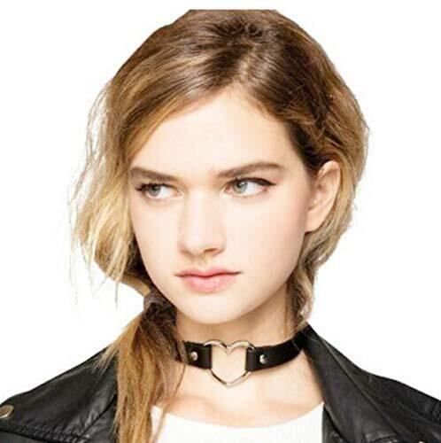 [JEWELRYWE] ファション 可愛い レディース 首輪 チョーカー レザー(革) ハートデザイン カジュアル 個性 幅(17mm)-[ブラック]