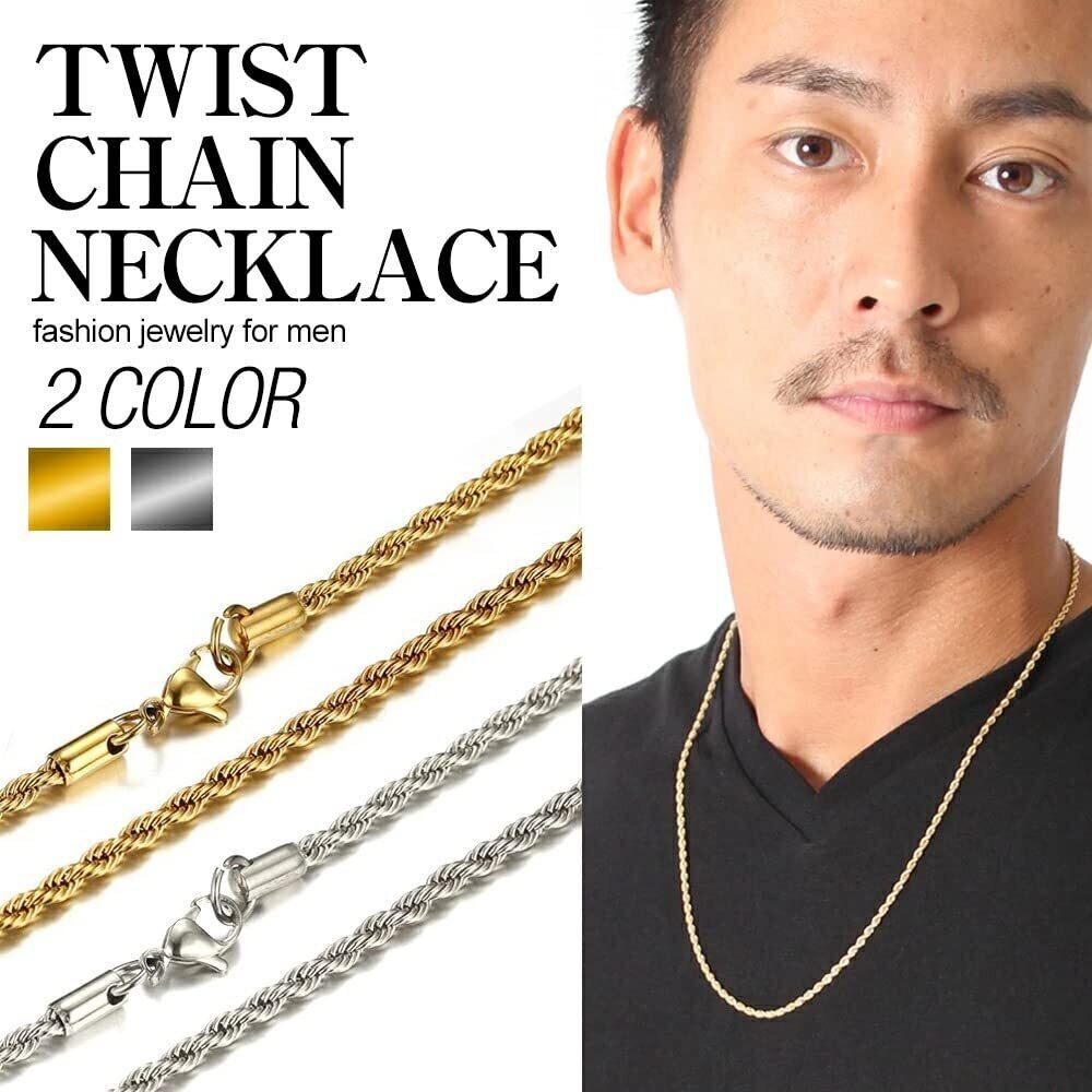 普段使いに最適なシンプルロープチェーンネックレス。 メンズにもレディースにも人気の高いデザインでどなたにでもおすすめできるシンプルなチェーンネックレス!ツイストされたチェーンでそのままでもお持ちのネックレストップを合わせてもしっかりデザイン性のあるチェーンです。 フォーマルスタイルにもカジュアルスタイルにも相性がよく、シーンを選ばずどんな時でも着用OK! カラーバリエーションはゴールドとシルバー、ピンクゴールドの3色展開で太さは2mm、3mm、4mm、長さも各種取り揃えてあり、自分の好みにあったサイズを選択可能。 サイズ違いのチェーンを重ねづけすることで、きれいな輝きで存在感を強調しオシャレにコーディネートすることができます。