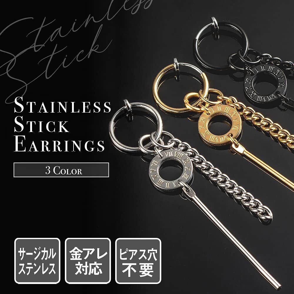 【在庫セール】[Puente] フェイクピアス イヤリング サージカルステンレス ステンレス 金属アレルギー対応 ノンホールピアス ローマ数字 リング チェーン スティック メンズ レディース フープ フープイヤリング フープピアス リングピアス | SmartLiving+