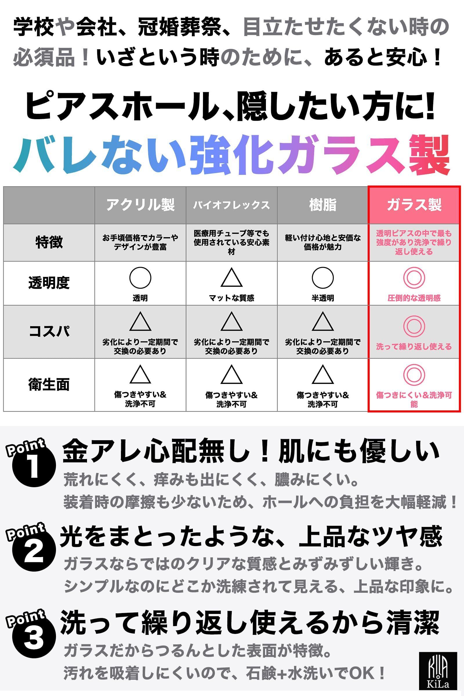 [KiLa] 肌色 ガラスピアス スキンカラー つけっぱなし 取れにくいキャッチ付き 目立たない 隠す 学校用 就活 寝る時 金属アレルギー対応 強化ガラス ファーストピアス リテーナー キラ
