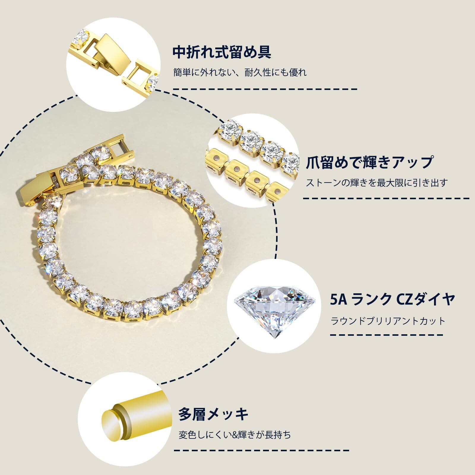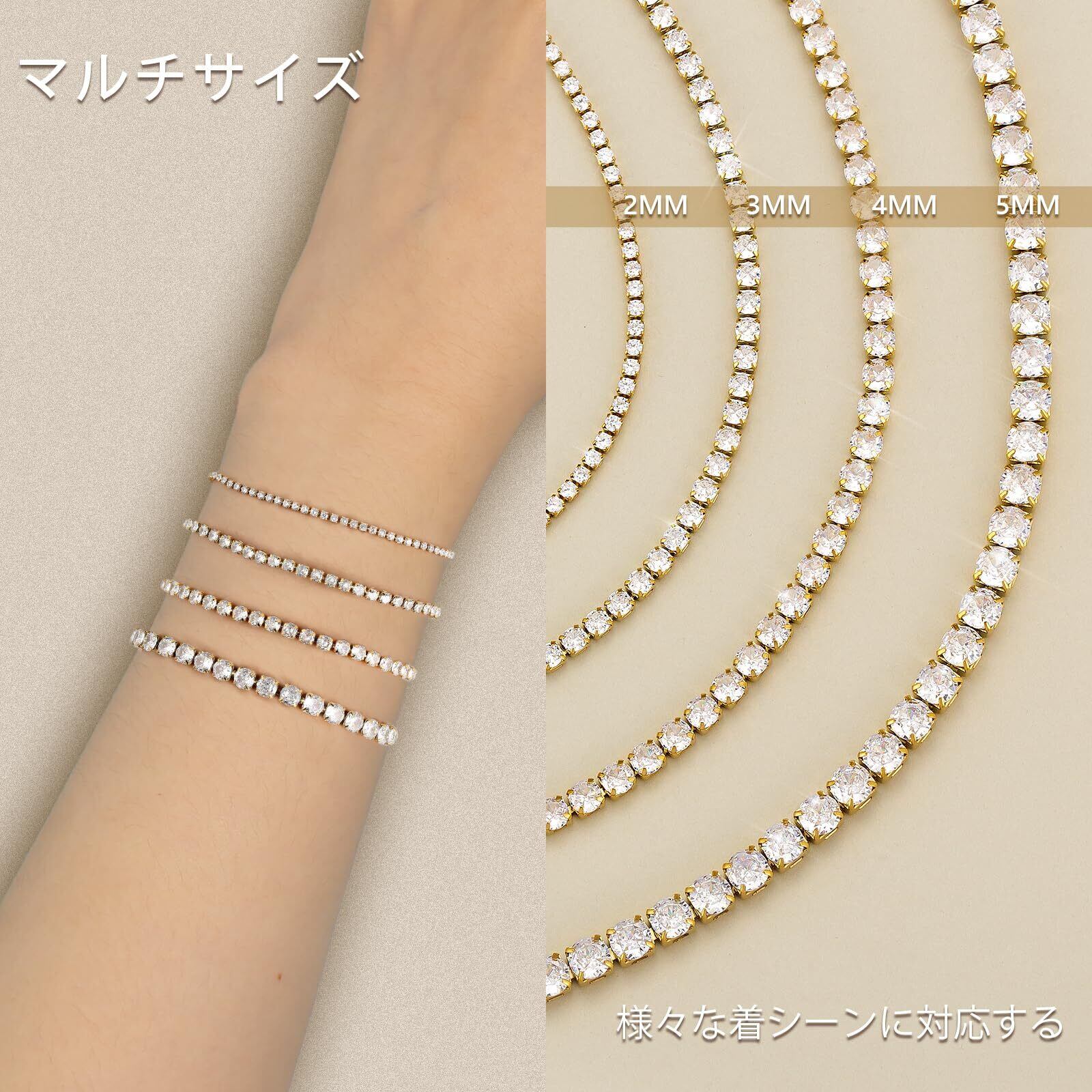 KRKC&CO テニスブレスレット レディース 幅2/3/4/5mm ジルコニア K14金メッキ サージカルステンレス CZダイヤ メンズ ブレス 金属アレルギー対応 キラキラ ジュエリー ブリンブリン 記念日 誕生日 ギフト