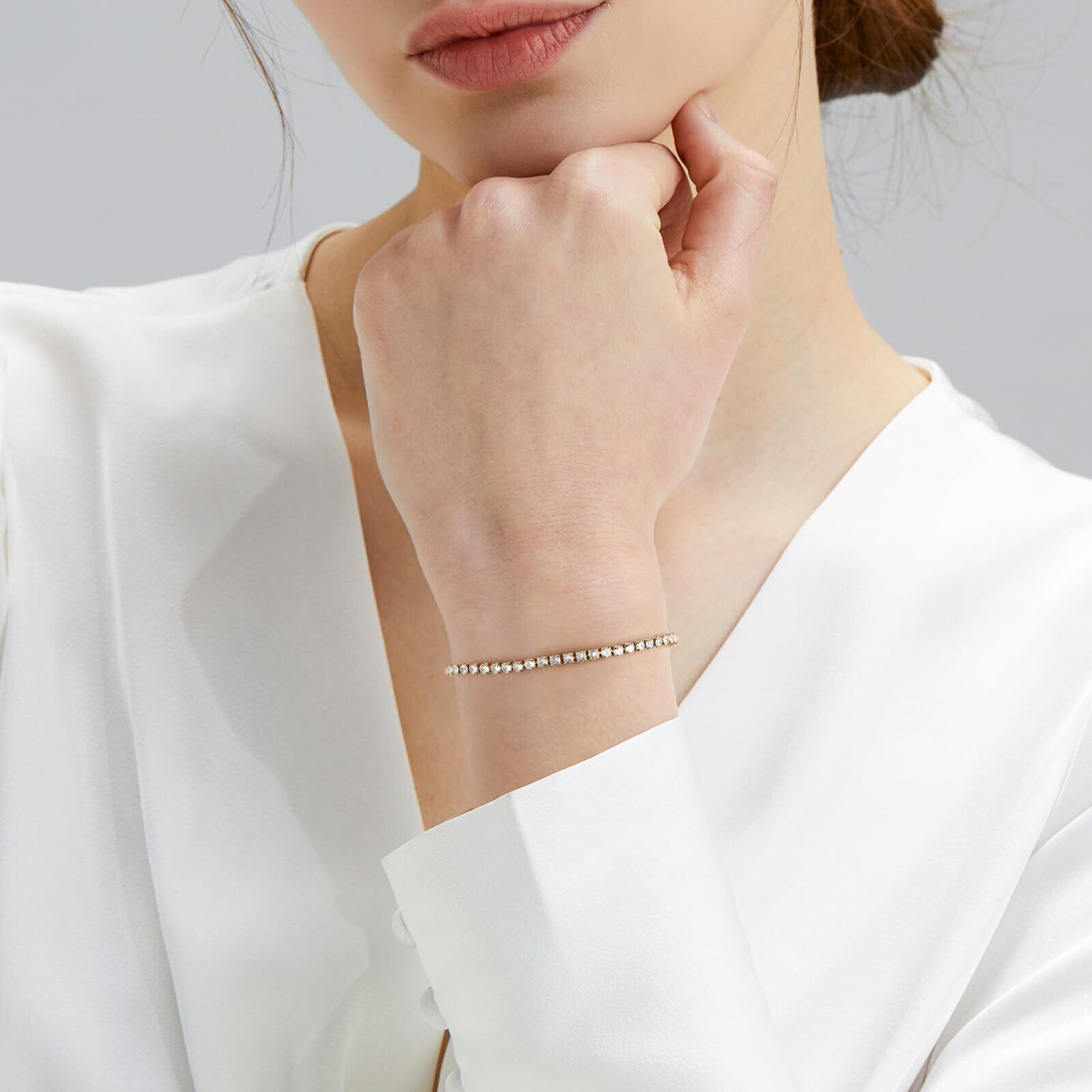 【手元を華やかに彩る】直径3mmのCZダイヤを丁寧に敷き詰めたシンプルで繊細なデザインテニスブレスレットです。シンプルで華やかなだけでなく、存在感のあるデザインです。どんな装いにも似以合うテニスブレスレットです。男女問わず使えるのでペアアクセサリーとしても活躍してくれます。お好みに合わせて、長さは約16.5cm/17.8cm/19cm、幅は約2mm/3mm/4mm/5mmからお選びいただけます。
