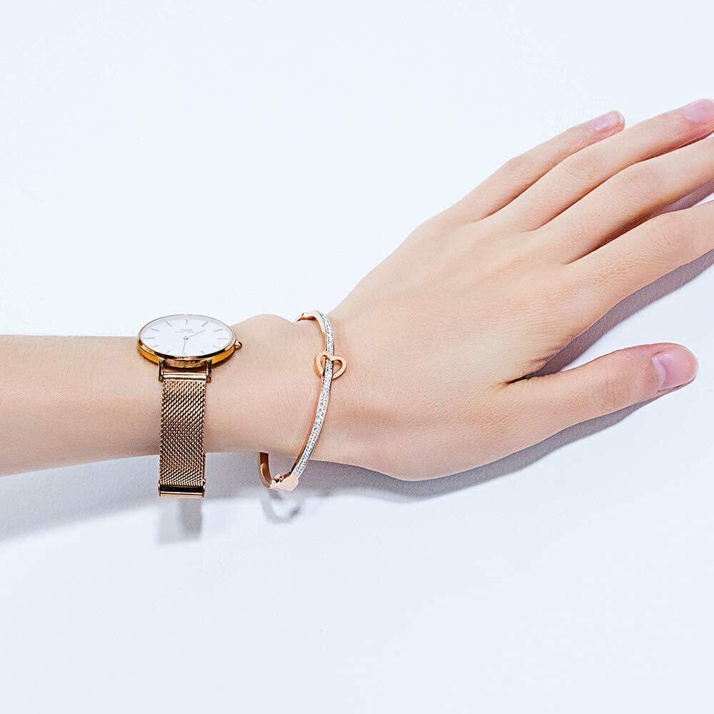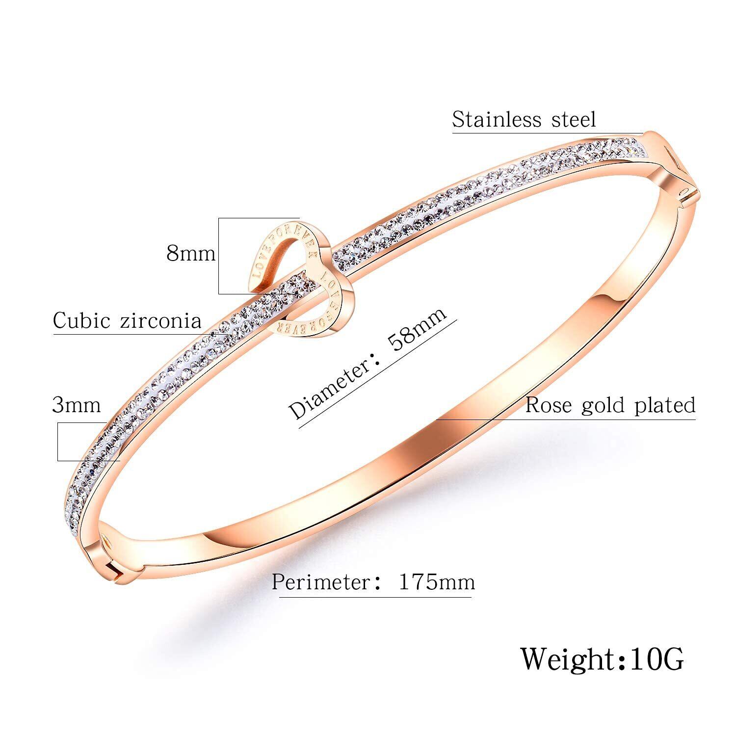 Rockyu ジュエリー ブランド 人気 バングル ゴールド ステンレス レディース ロマ数字 刻印 LOVE ウォッチベルト スタイル レディースバングル 南米エスニック 母の日 バレンタインデー プレゼント (ハート)
