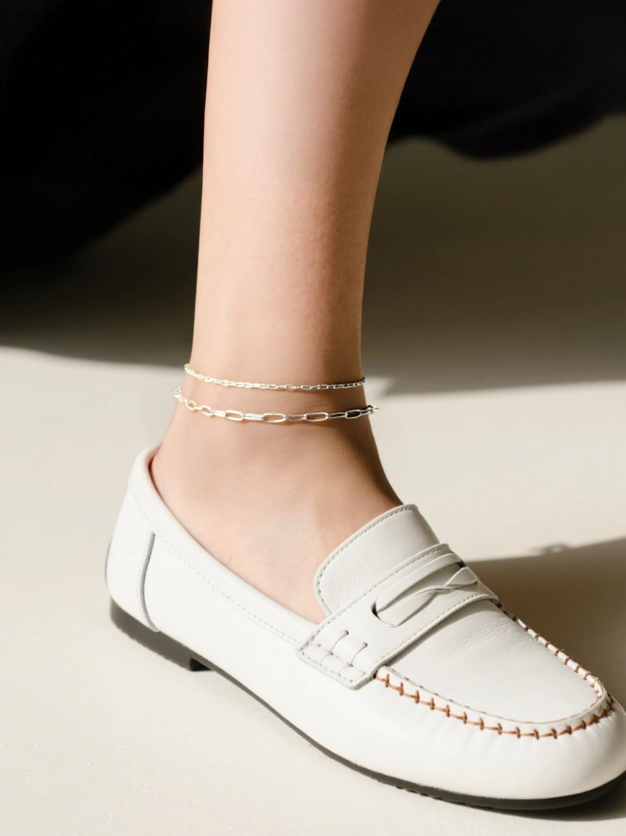 [チェーンアンクレット] 長あずきチェーンだけのシンプルさでも華やかな輝きが自慢のアンクレットです。シンプルでありながら、その存在感はカジュアルな装いからフォーマルなシーンまで幅広く対応します。