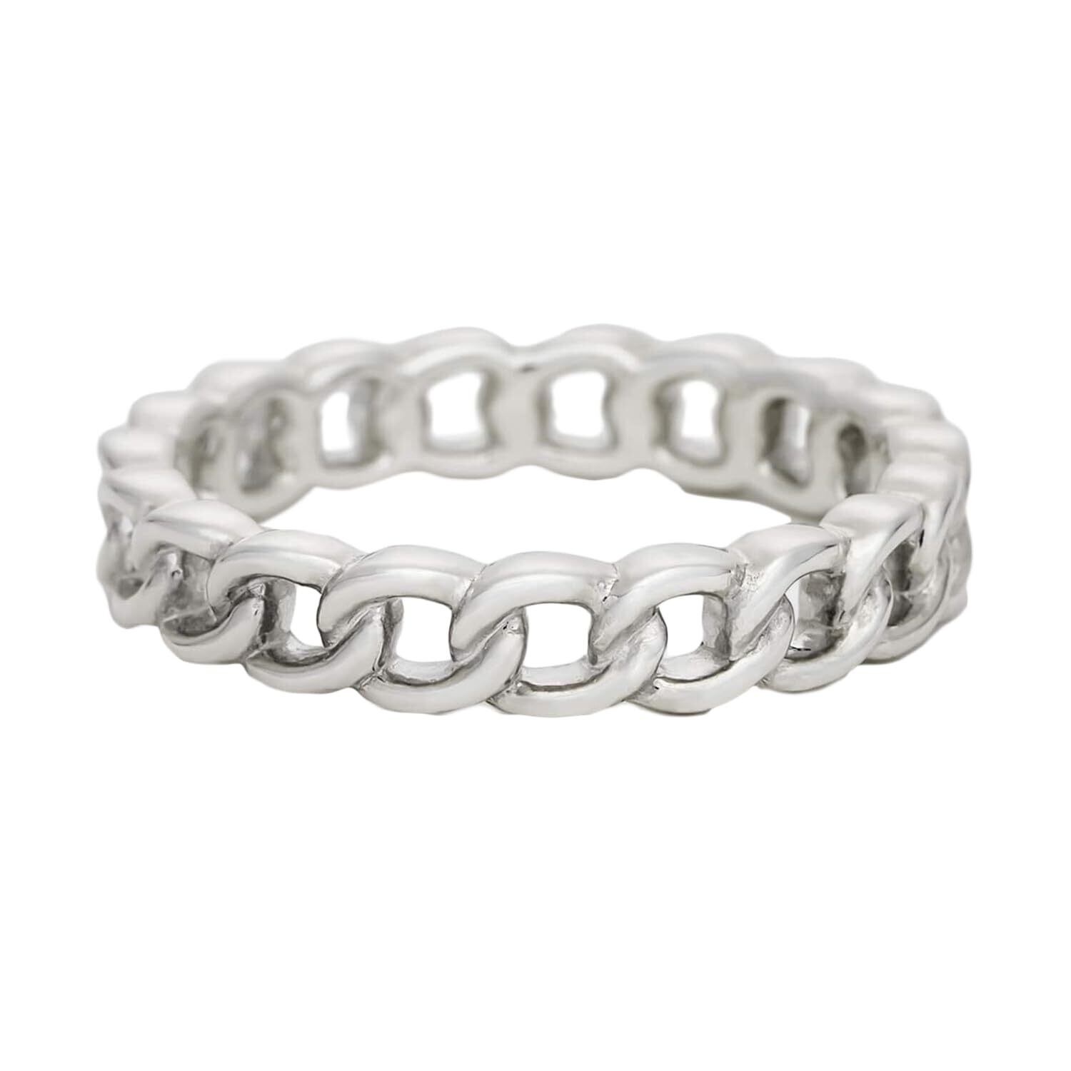 永遠の絆の意味が込められた、途切れの無いチェーンモチーフ。チェーンをぐるりと指に巻き付けたような立体的なシルエットにこだわりました。使い込むほどに指に馴染み、味わい深くなるリングです。ペアリングとしてもお使いいただけます。※サイズ直し不可。▼素材違い ゴールドの品番:30224111084。▼オススメコーディネート品番:30224111081、30212111015。