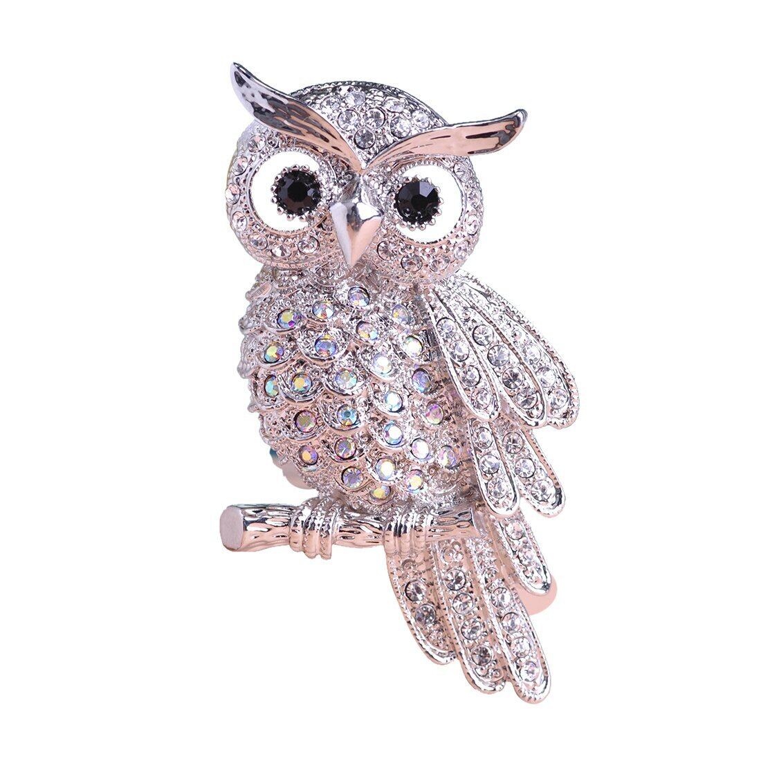 MECHOSEN 幸運を呼ぶ かわいい梟 フクロウのブローチ スカーフクリップ ピンバッジ ジルコニア キラキラ シルバー 人気 クリスマス プレゼント 入学式 卒業式 記念物