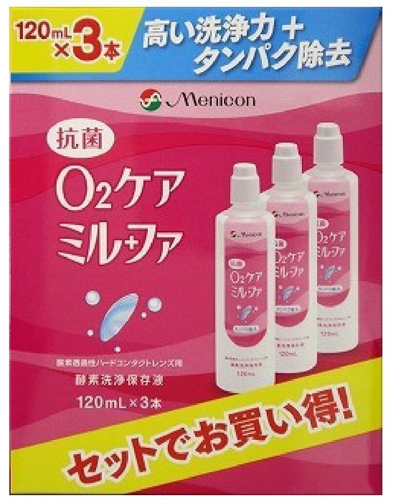 メニコン 抗菌O2ケアミルファ 洗浄・保存・タンパク除去(ハード用) 120mLx3本パック (コンタクトケア用品)