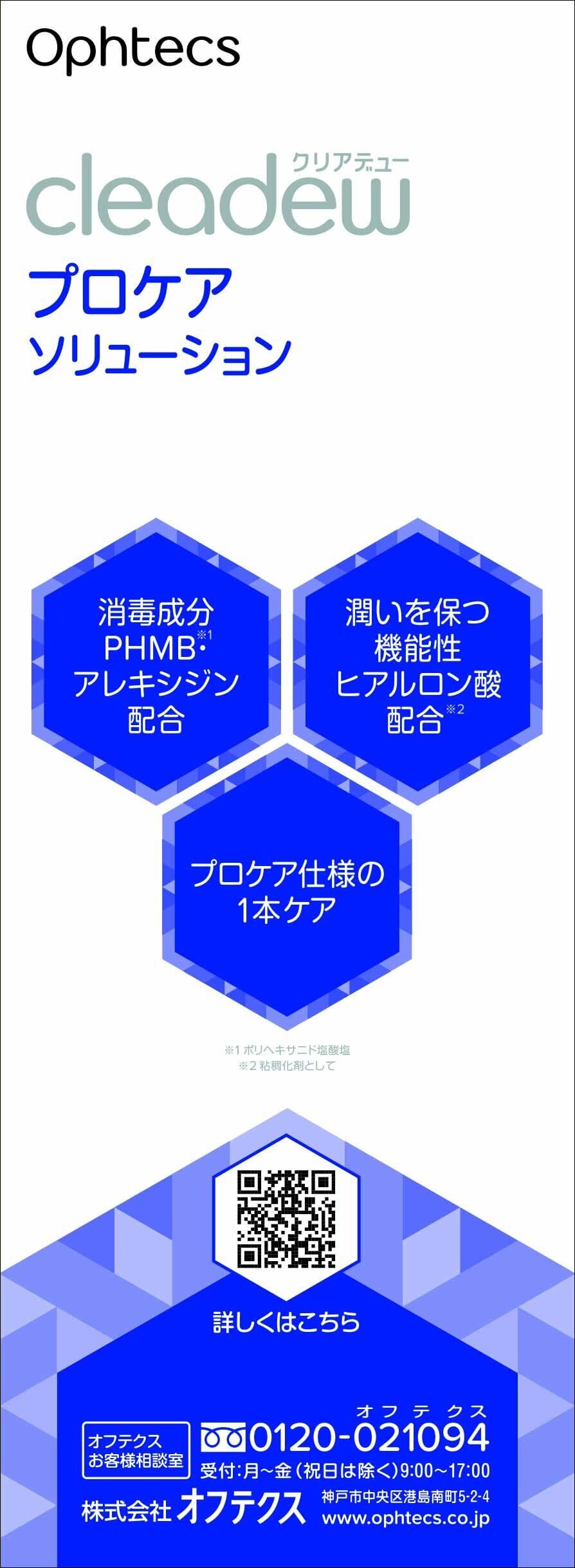 消毒成分PHMB(ポリヘキサニド塩酸塩)・アレキシジン配合、潤いを保つ機能性ヒアルロン酸を配合し(粘稠化剤として)、プロケア仕様の1本ケアになりました。ソフトコンタクトレンズ(グループI~IV)の消毒 原材料・成分 【有効成分】1mL中ポリヘキサニド塩酸塩0.0011mg、アレキシジン塩酸塩0.004mg【配合成分】界面活性剤、安定剤、等張化剤、緩衝剤、pH調整剤、粘稠化剤【表示指定成分】エデト酸塩、ポリオキシエチレンポリオキシプロピレングリコール 使用方法 (1)ソフトコンタクトレンズに本剤を数滴つけ、レンズの両面を各々、20~30回指で軽くこすりながら洗います。(2)洗ったレンズの両面を本剤で十分すすぎます。(3)レンズケースに本剤を満たし、レンズを完全に浸し、4時間以上放置します。 安全警告 ・ご使用に際しては、添付の使用説明書をよくお読みください。・装用前に本剤でレンズをすすいでから装用してください。・開封後は1ヵ月を目安に使用してください。・目に異常を感じたら、眼科を受診してください。・誤用を避け、品質を保持するため、他の容器に入れ替えないでください。・本剤を使用中にじんましん、息苦しさなどの異常があらわれた場合は直ちに使用を中止し、医師または薬剤師に相談してください。特に、アレルギー体質の人や、薬などで発疹などの過敏症状を経験したことがある人は、十分注意してください。・レンズの汚れには個人差があり、毎日のレンズケアだけでは完全に除去できない場合があります。汚れがひどい方には毎日1滴ずつ加えて使用するタイプのタンパク除去剤「クレンスター」との併用をおすすめします。 続きを見る