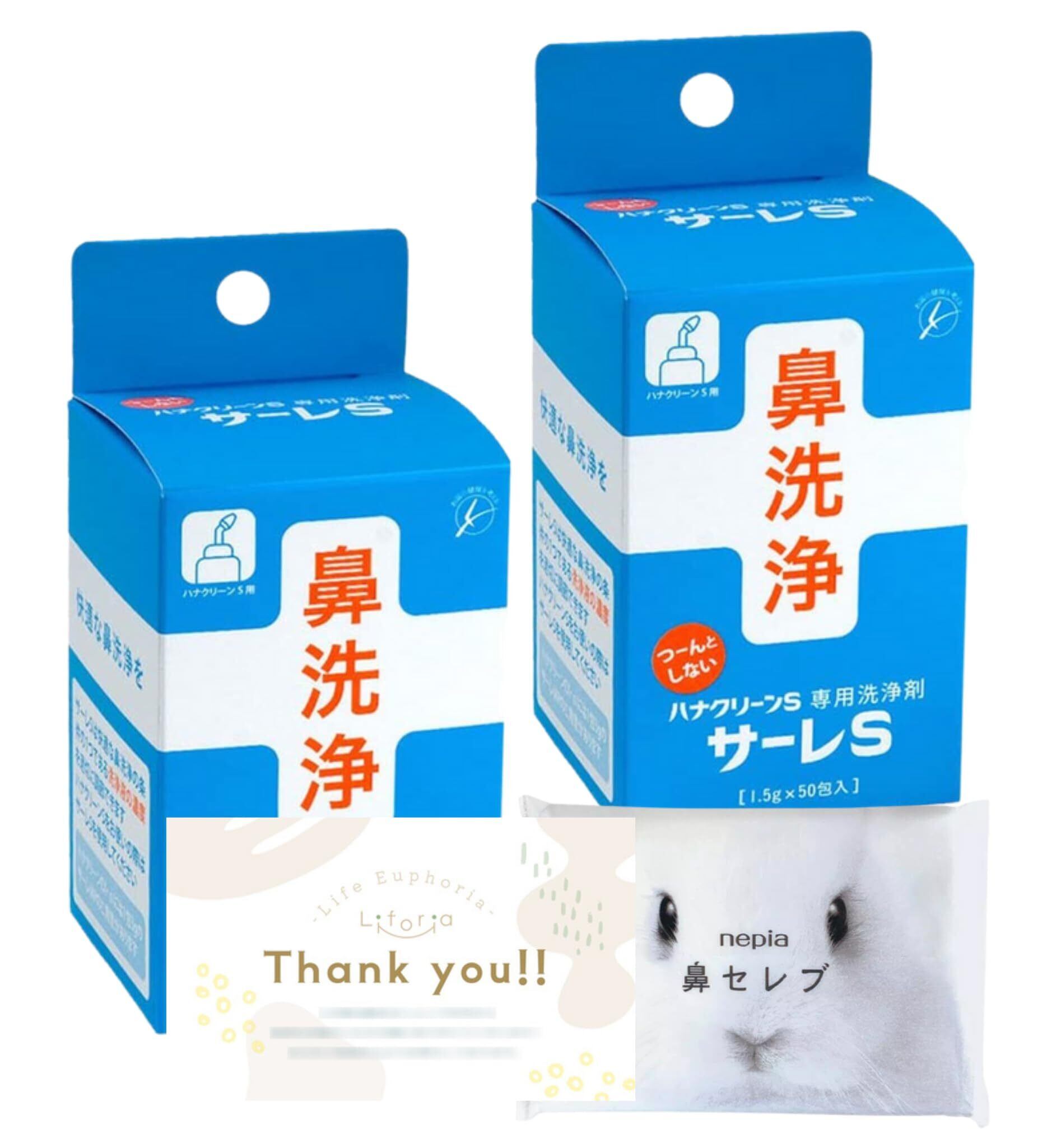 ハナクリーンS 専用洗浄剤 サーレS×2個・鼻セレブポケットティッシュ×1個・オリジナルステッカー×1個のお得なセット。