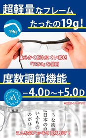 度数調節機能付きで、ご自分の視力に合わせて片眼ずつ度数調節ができます。1本で幅広い度数をカバー、全対応メガネで買い替え不要!さらにブルーライトカットとUVカットもついております。