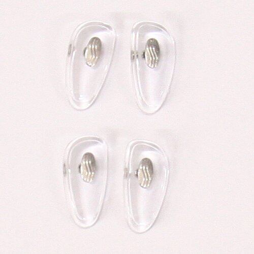 いろんな鼻パッドがありますが、こちらは【シリコンタイプ】の鼻パッドです。 とにかく“ずれにくい鼻パット”をご希望なら、シリコン素材の鼻パットですね。 まだシリコンパット未経験の方には伝わりにくいのですが、肌にピタッとくっつくような感覚にびっくりすると思います。 ただし、欠点はシリコン素材ゆえにハードタイプのパットよりも寿命が短いですし、汗や水を吸いますから汚れが目立ちます。 (そんな時はクリーナーなどでパットも洗ってあげると“ピタット感”が戻ります。) メガネがすぐにズルズルずれる方はご検討の余地ありです。 取り付けはネジ回し式のパット受けに限ります。 おそらく、現在お持ちのメガネやサングラスが“ネジ入れ式のパット”ならそのままご自身で取り付けれると思いますが、ワンタッチ式やかしめ式のパットの場合、取り付けることが出来ませんのでお確かめになられてからご購入くださいませ。 日本製 フレームがずれ落ちづらくするシリコンパットです。 ネジ式 :18mm×9mm 穴径:1.2mm