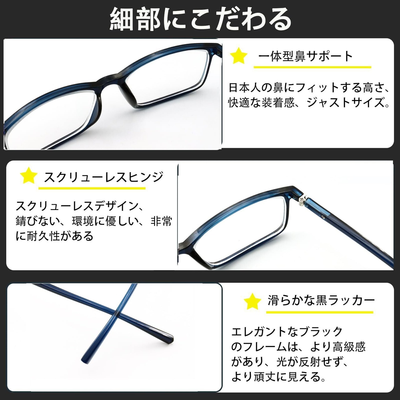 歪みのないクリアな視界: この眼鏡は、高精度なレンズを使用しており、視野の端から端まで鮮明でクリアな視界を提供します。これにより、長時間の読書やコンピュータ作業でも、視界のブレや歪みがなく、快適に集中することができます。さらに、レンズの表面には特別なコーティングが施されており、反射やグレアを効果的に抑え、目にかかる負担を最小限に抑えます。視界を広くクリアに保つことで、日常生活のあらゆる場面で快適な視覚体験を提供します。