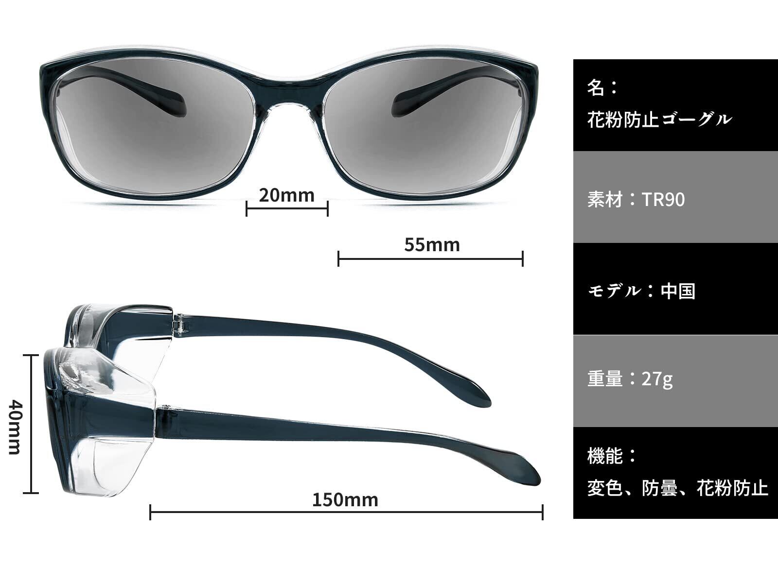 【花粉対策 】花粉やホコリからやさしく目をガードします、花粉やホコリをしっかり防ぐゴーグルタイプの花粉メガネです、花粉カット率は約95%と業界トップクラスを達成!