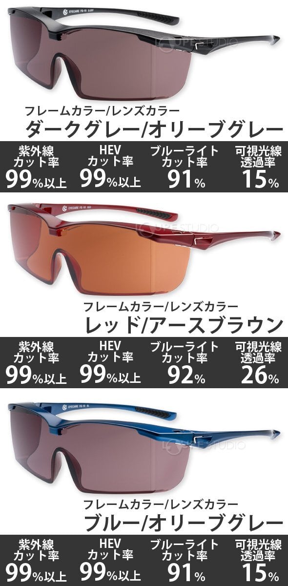 オーバーグラス サングラス アイケアグラス プレミアム UV420 紫外線 HEV ブルーライト カット 曇り止め メガネの上から 福井大学医学部付属病院 共同研究品