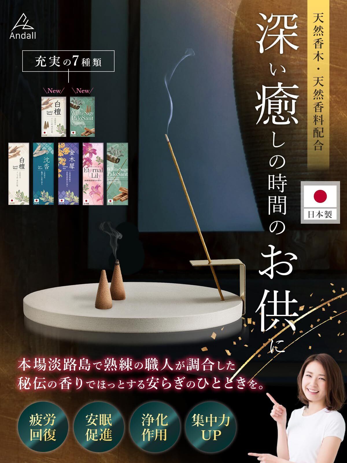 【安心の日本企業対応|類似品にご注意ください】 似たようなお香でも品質や香料の安全性、サポート体制には大きな違いがあります。Andallは日本企業として、品質とアフターサポートを徹底。不具合やご不明点にも、日本人スタッフが丁寧に対応いたします。