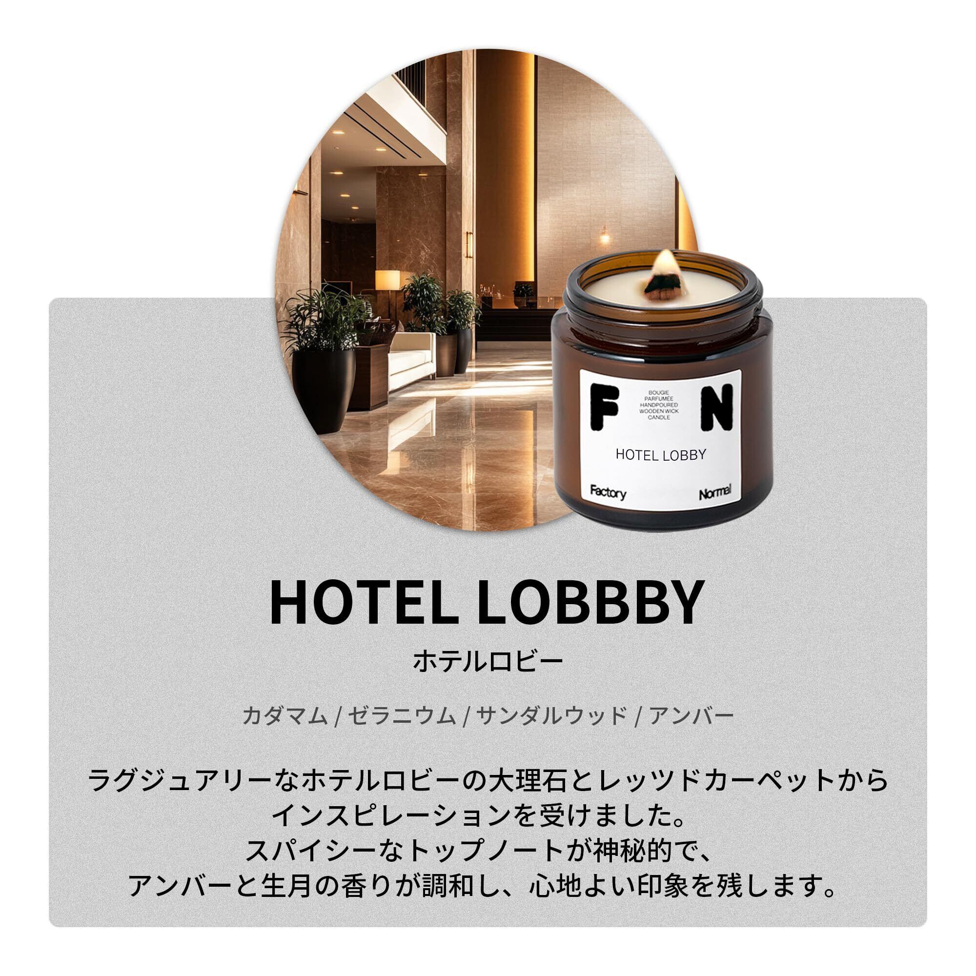 Factory Normal ウッド芯キャンドル105g パチパチ音がする茶色い瓶パフュームソイキャンドル癒しグッズギフトアロマキャンドル (105g, Hotel Lobby)