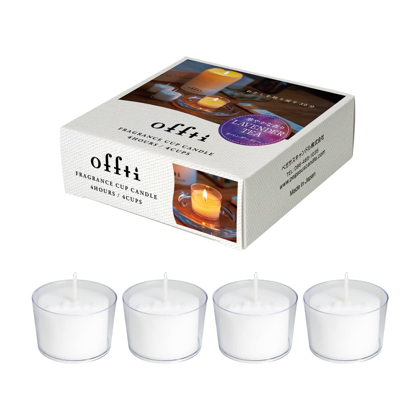 オフティ アロマキャンドル ラベンダーティーの香り 4時間×4個セット 天然香料配合 燃焼時間16時間 リラックス&睡眠導入 日本製 夜の癒し空間作り 贅沢な眠りへ導くギフトにも最適 フレグランスカップ offti