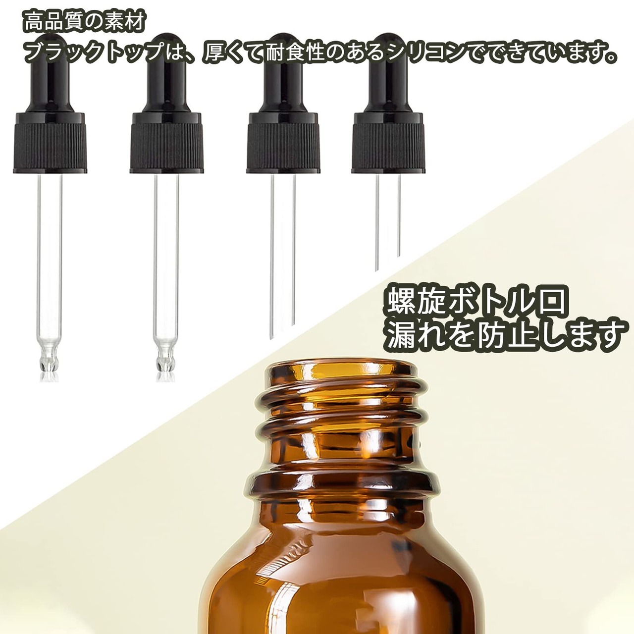 [遮光瓶 スポイト]:ガラス瓶には、シリコンゴム製のスポイトが付いたキャップがあり、1滴ずつ使用することができます。また、ドロッパーでは出にくいエッセンシャルオイルを抽出するのに適しています。同時にブラウンボトルは遮光性で、液体の劣化を防ぎます。