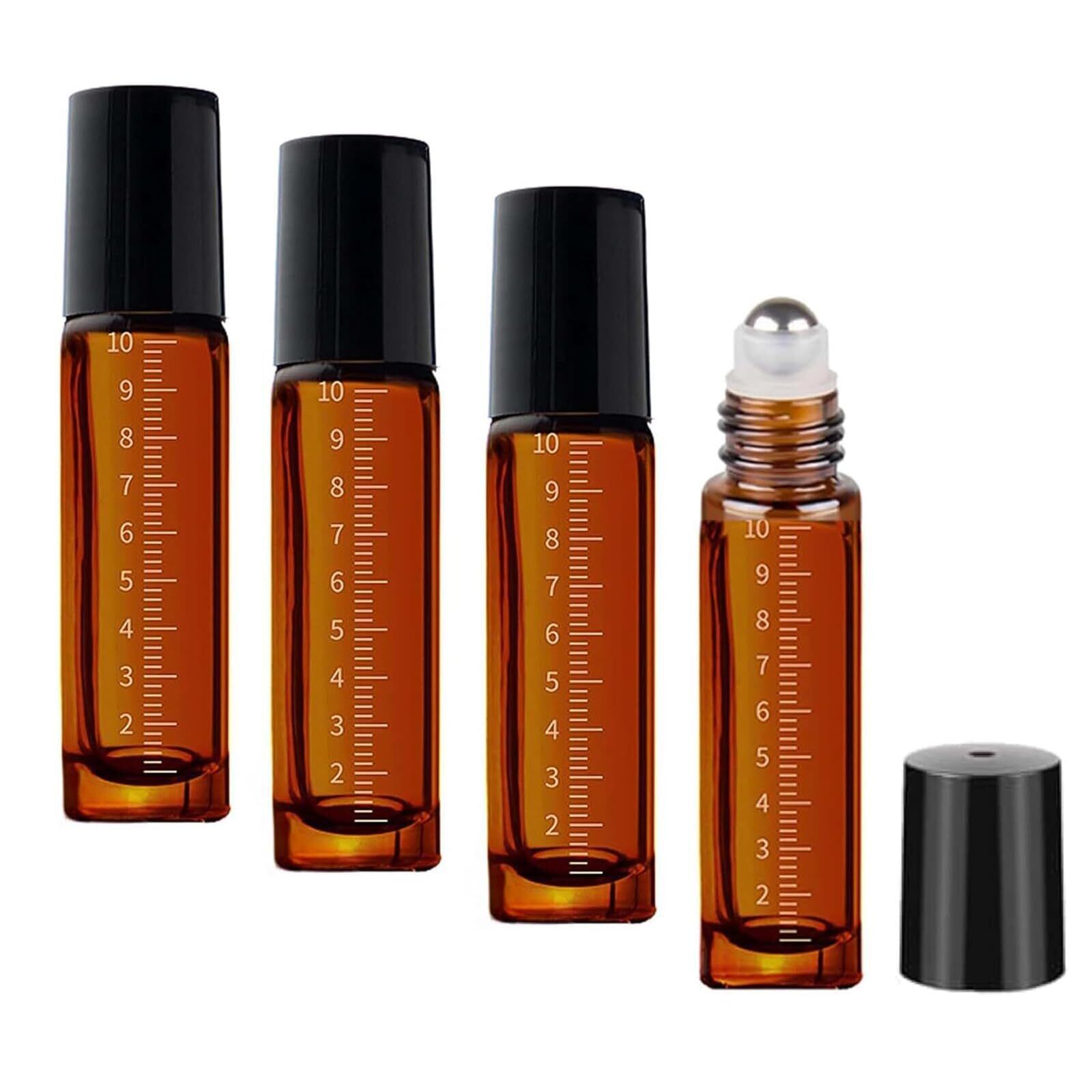 Meltryllis ロールオンボトル 遮光瓶 アトマイザー 4個セット 10ml 遮光ガラス製 目盛り付き 香水 アロマ対応 小分け詰替え容器 エッセンシャルオイル ロールオン瓶(ブラック)