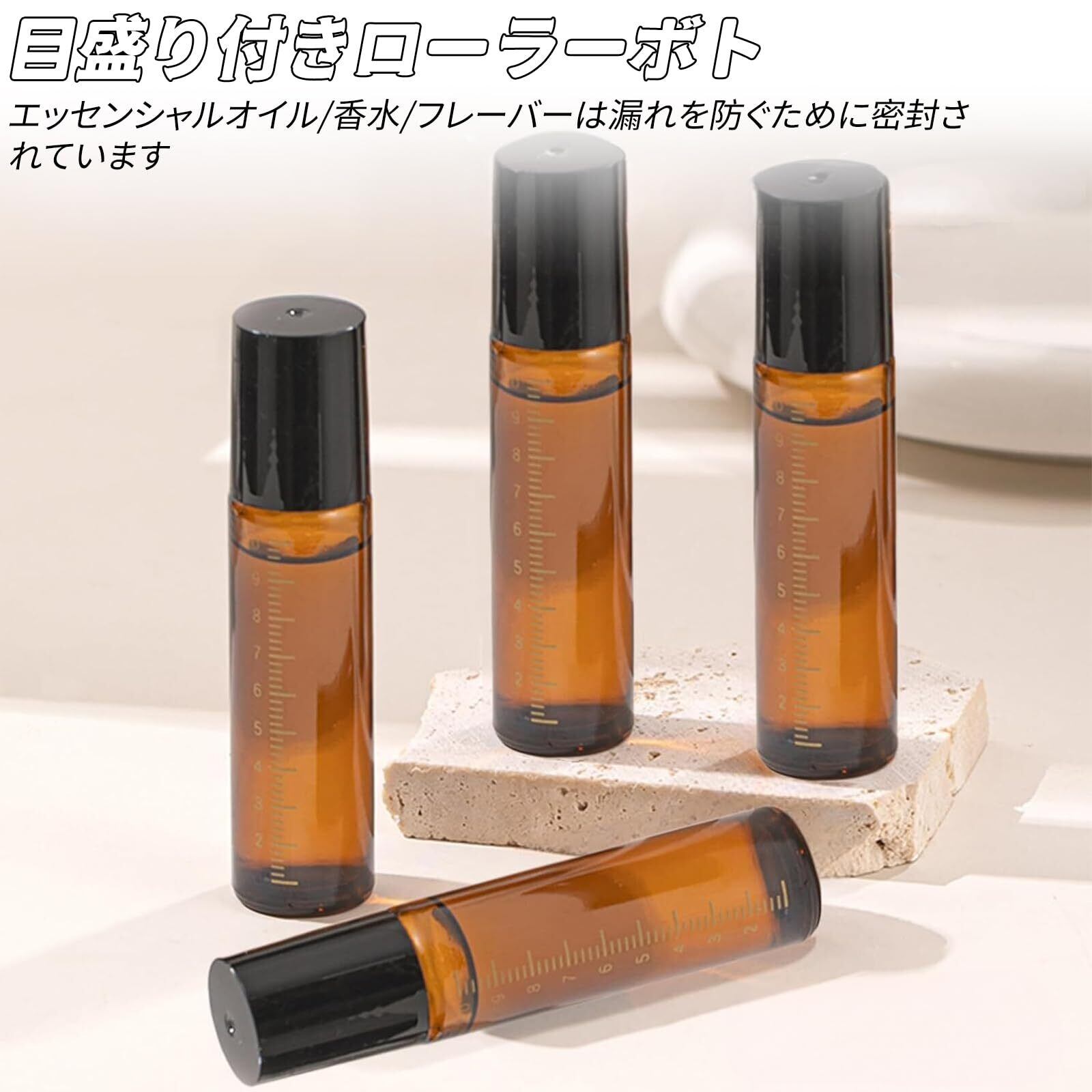 【在庫処分】Meltryllis ロールオンボトル 遮光瓶 アトマイザー 4個セット 10ml 遮光ガラス製 目盛り付き 香水 アロマ対応 小分け詰替え容器 エッセンシャルオイル ロールオン瓶(ブラック) | SmartLiving+