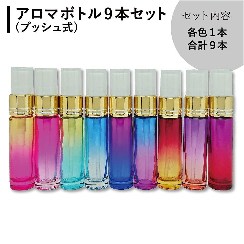 カラフルなスプレータイプ(プッシュタイプ)のアロマボトル 9色セットです。