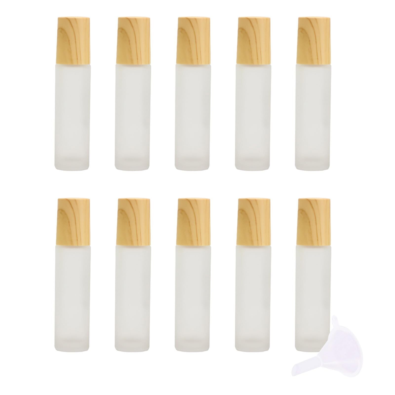 Alpha Depot ロールオンボトル 遮光瓶 アトマイザー アロマ 容器 精油 ボトル 木目キャップ + 漏斗付き (10ml × 10個)