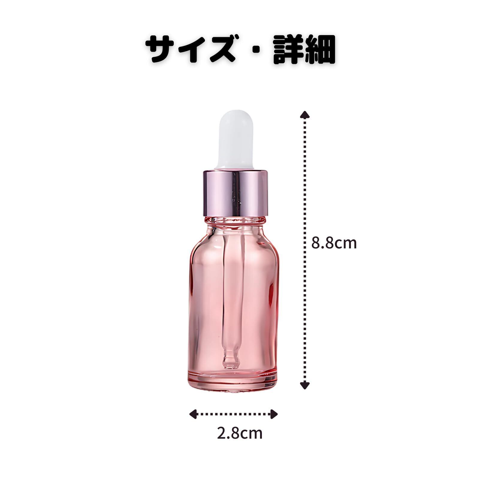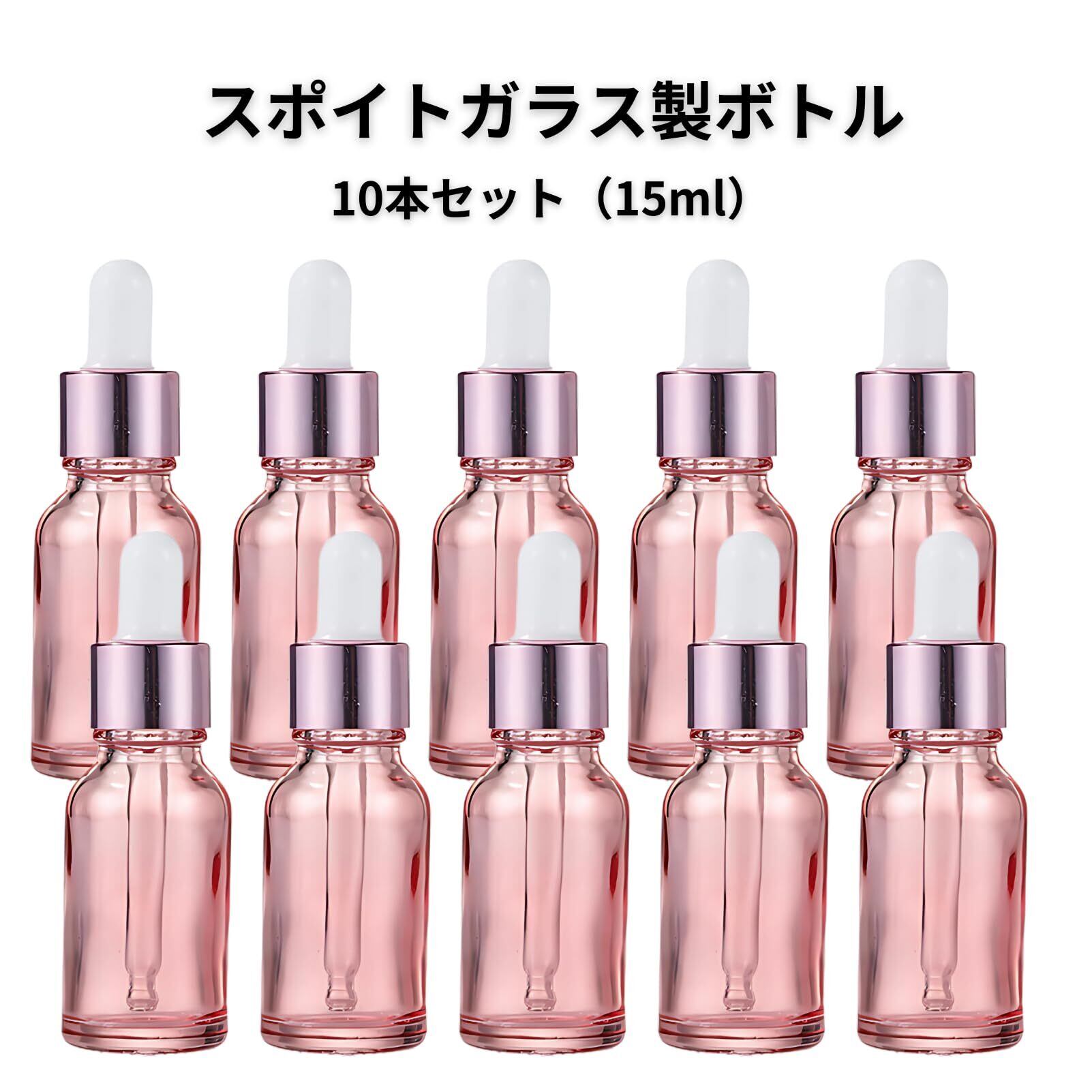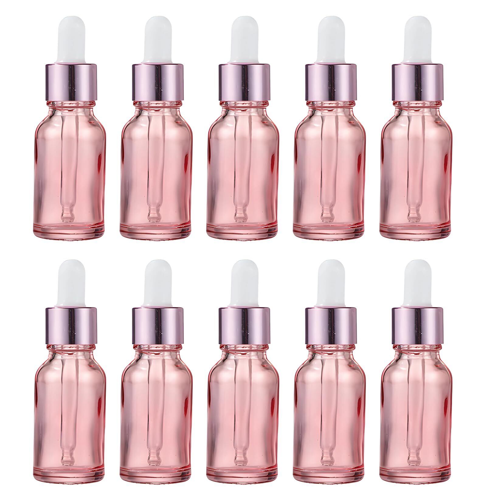 Riblind スポイト付き遮光瓶 15ml 10本セット 詰め替え用 アロマ・オイル対応 小型ガラス容器 ピンク