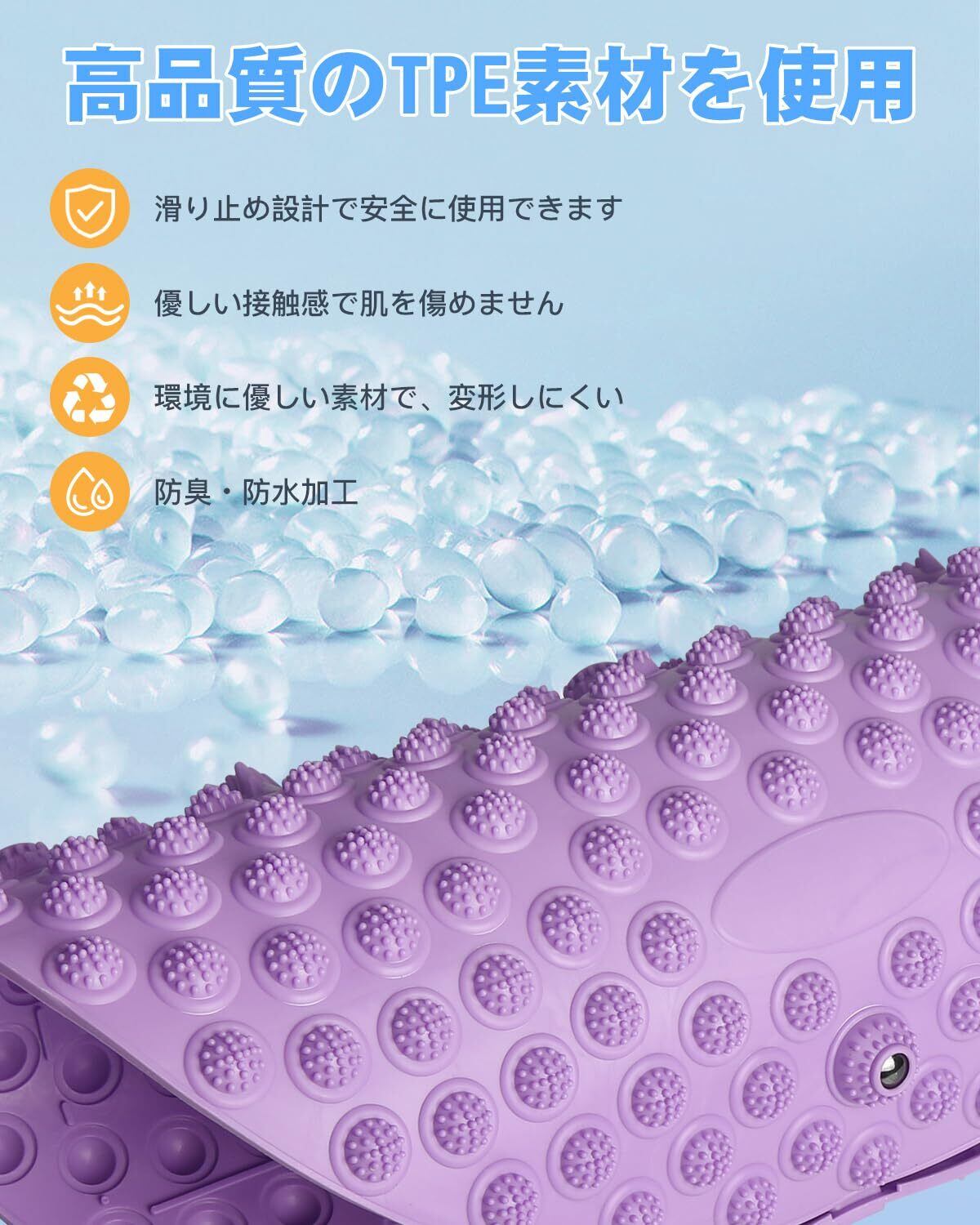【足ツボマット】高品質のTPE素材で作られた指圧パッドフットマッサージ-厚みのある丸いデザイン、素材の適度な柔らかさと強度を備えています。直径35CM、重さ約200グラム。特殊なツボ押し設計が足の反射区にフィットし、足裏のツボを効果的に刺激し。強く押すことで刺激の強さを調整し、プロのマッサージのような心地よさを味わえます。