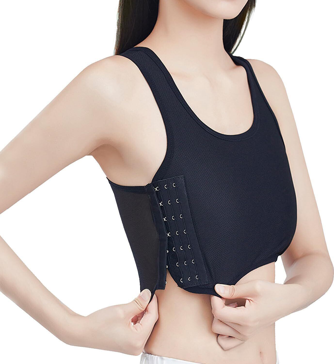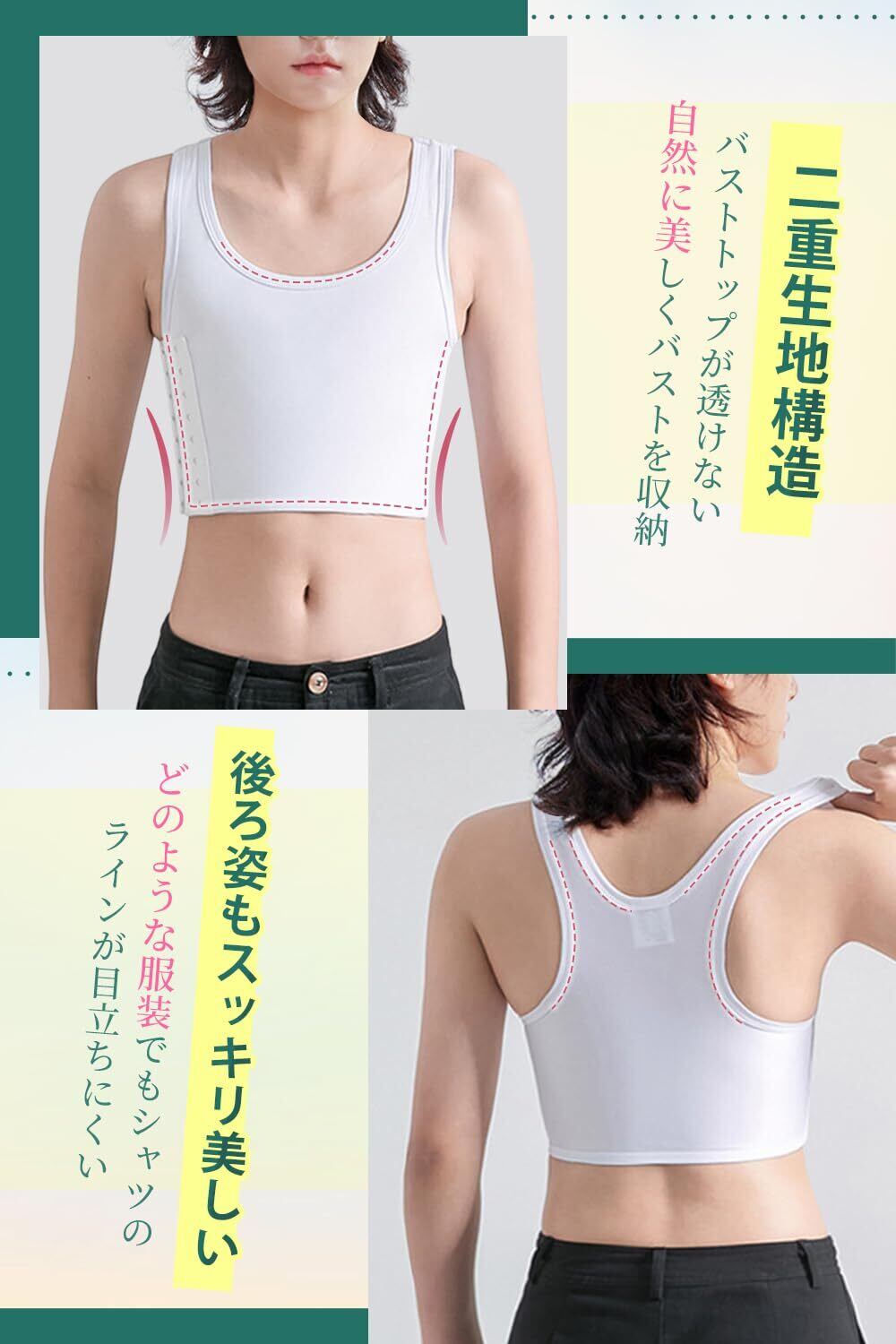 【簡単に使え・胸を小さく見せる】これはバストを自然に潰す事で美しいシルエットに見せるショート丈のタンクトップ型ナベシャツです。右側にホックがあり、着脱しやすい、後ろに手が届かない女性も楽に使えます。バストを小さく見せたい方、スポーツや運動時揺れ出来るだけ押さえたい方、コスプレや男装される方におすすめします。