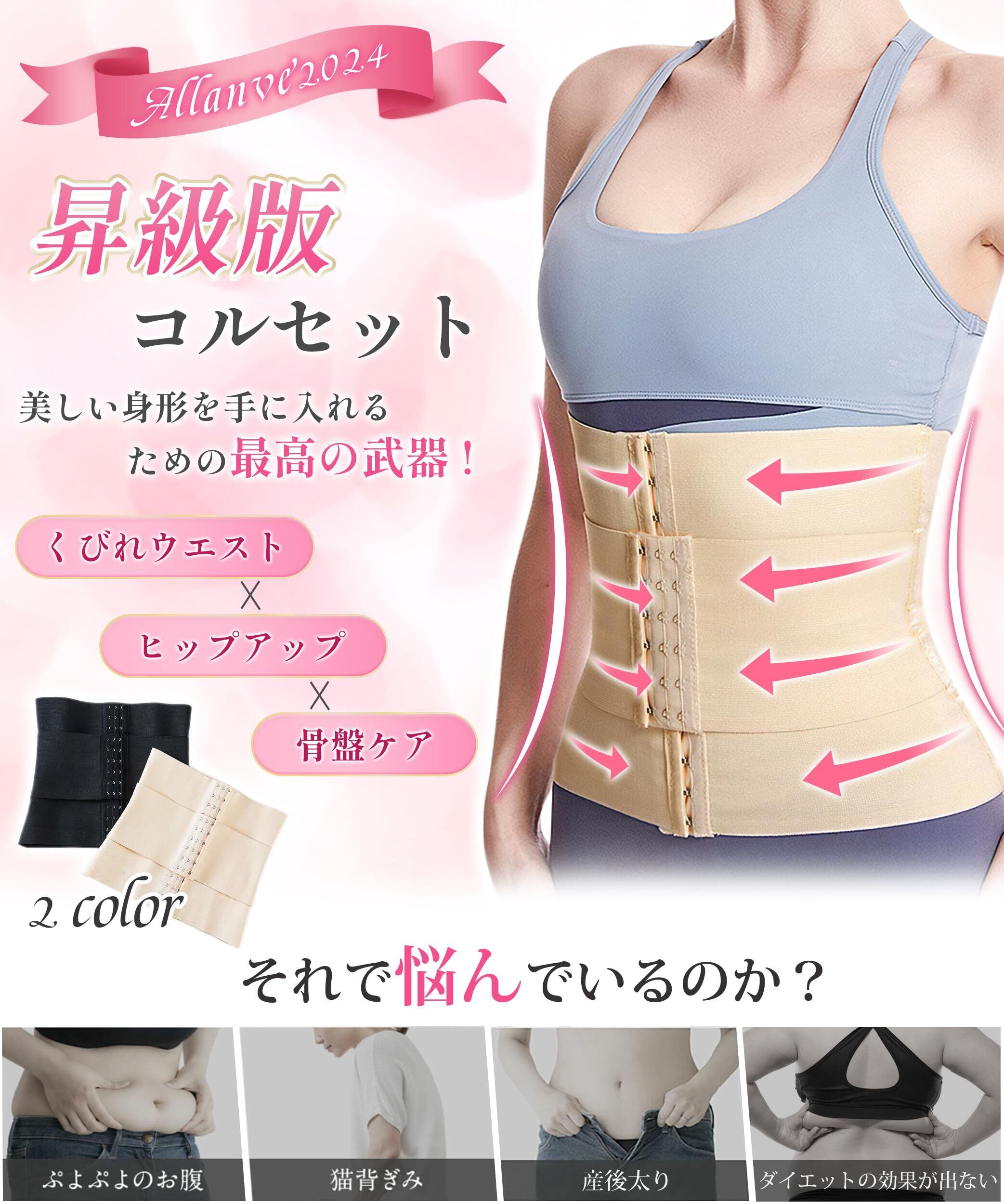 [Allanve] コルセット ウエストニッパー 【三段強力加圧・瞬間9cm引き締め・驚い伸縮性】 レディース くびれ 調節可能 着圧 お腹引き締め ウエストシェイパー ランバーサポート 通気性 ボディーシェイパー 産後ケア 骨盤ケア オールシーズン対応