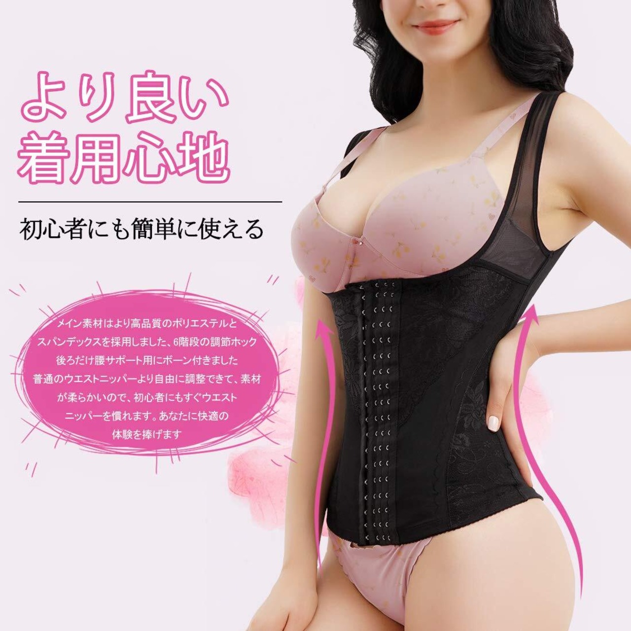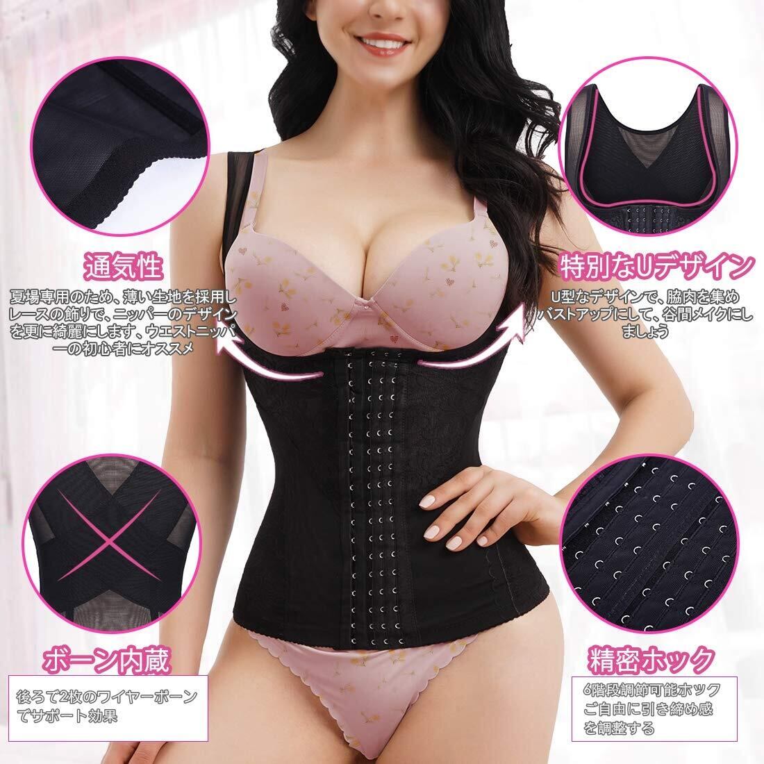 [Sawaiko] ウエストニッパー コルセット 補正下着 背筋 レディース 調整可能 お腹引き締め くびれ シェイプ 通気 伸縮 花柄