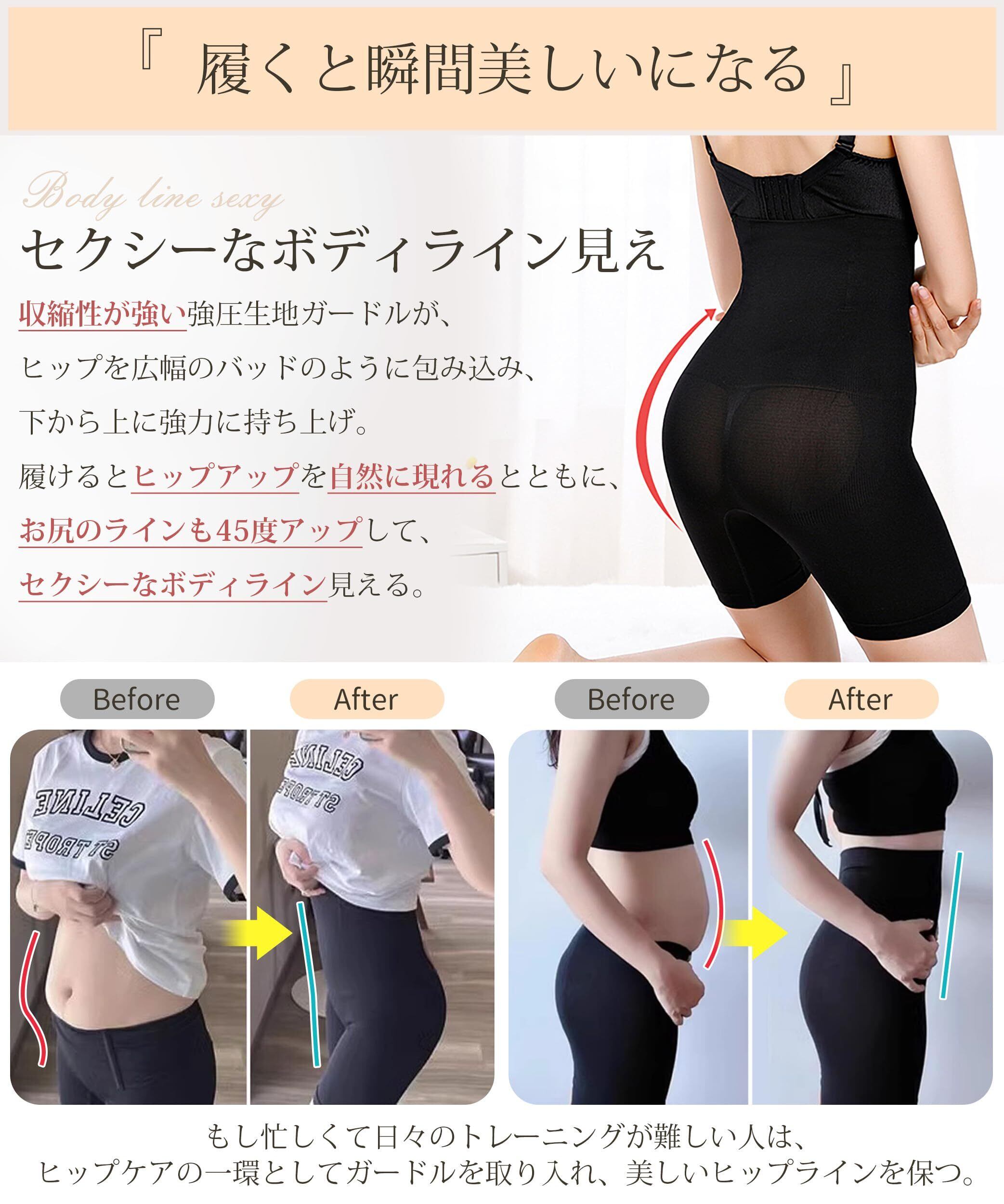 【ヒップアップ現れ・セクシーなボディライン見え】AOYの補正下着 ガードルはお尻を持ち上げるように科学的にデザインされて、収縮性が強い強圧生地ガードルが、ヒップを広幅のバッドのように包み込み、下から上に強力に持ち上げます。AOYのガードルを履けるとヒップアップを自然に現れるとともに、お尻のラインも45度アップして、セクシーなボディライン見えるガードルです。もし忙しくて日々のトレーニングが難しい人は、ヒップケアの一環としてガードルを取り入れ、美しいヒップラインを保つガードルです。