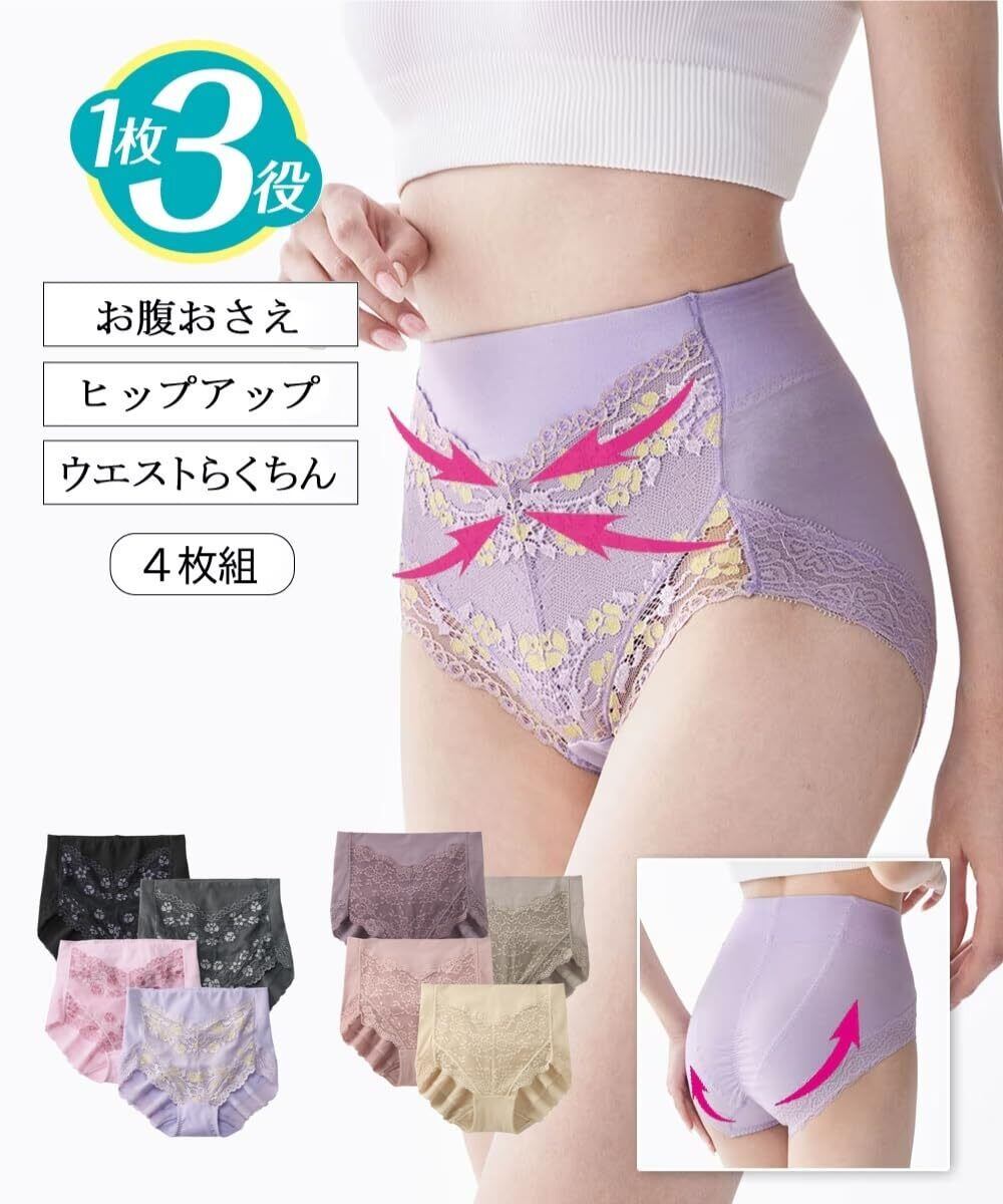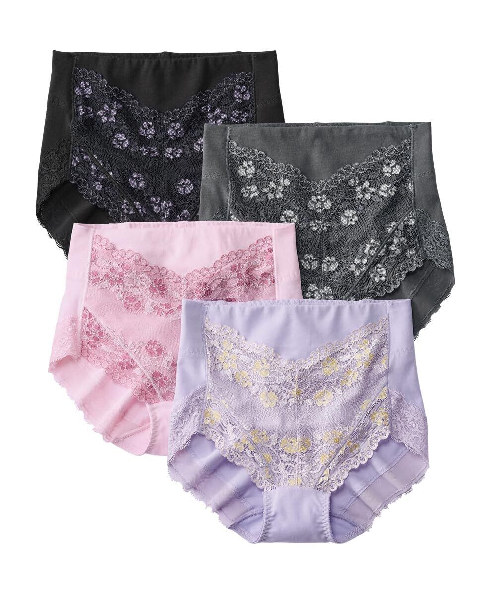 [ニッセン] 補正ショーツ・ガードル 綿混ストレッチ お腹&ヒップサポート レーシー深ばき丈ショーツ4枚組