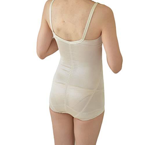 ソフトな着用感なのに、裏当てでおなかとヒップをスッキリとサポート。バストも、ワイヤーを使わずにキレイに整えます。胸元から股のホックまでの丈が長めだから、突っ張りかんがありません。 (日本人の少し胴が長い体型に合わせています。) カップはフルカップになります。。 コントロールパネルでお腹もヒップも支えます。
