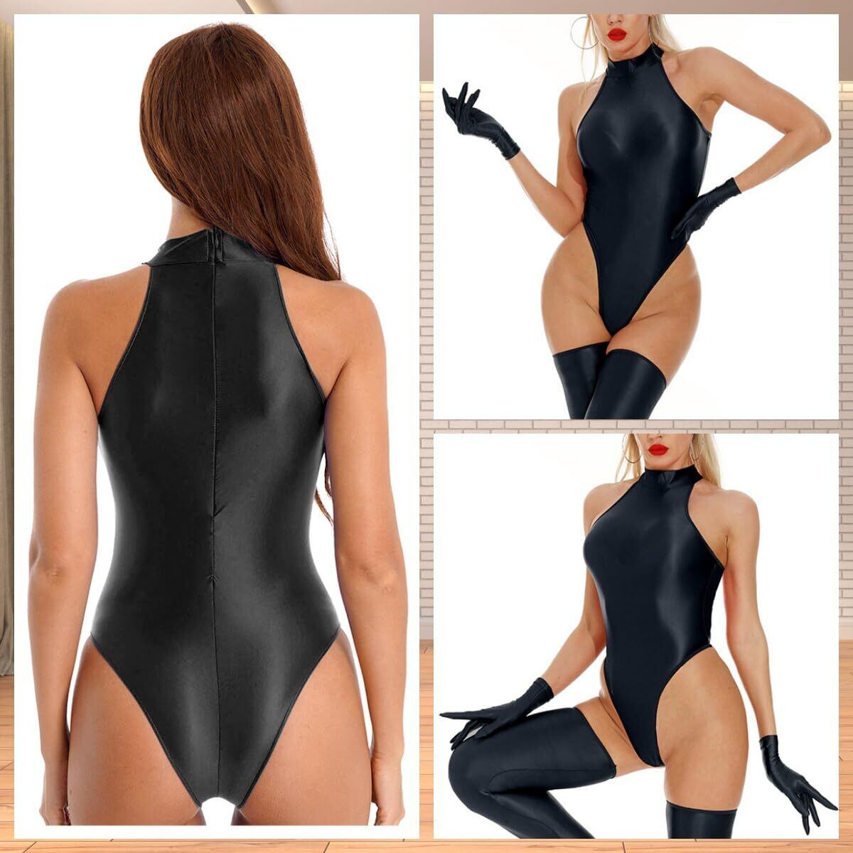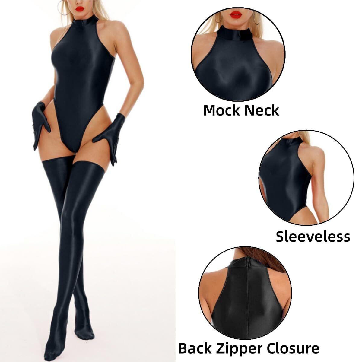 [Getrays] ノースリーブ ボディスーツ レディース モックネック ハイレグ レオタードインナー光沢 無地 つるつる ストレッチ オシャレ 吸湿速乾 伸縮性 水着ワンピース パーティー ダンス クラブ