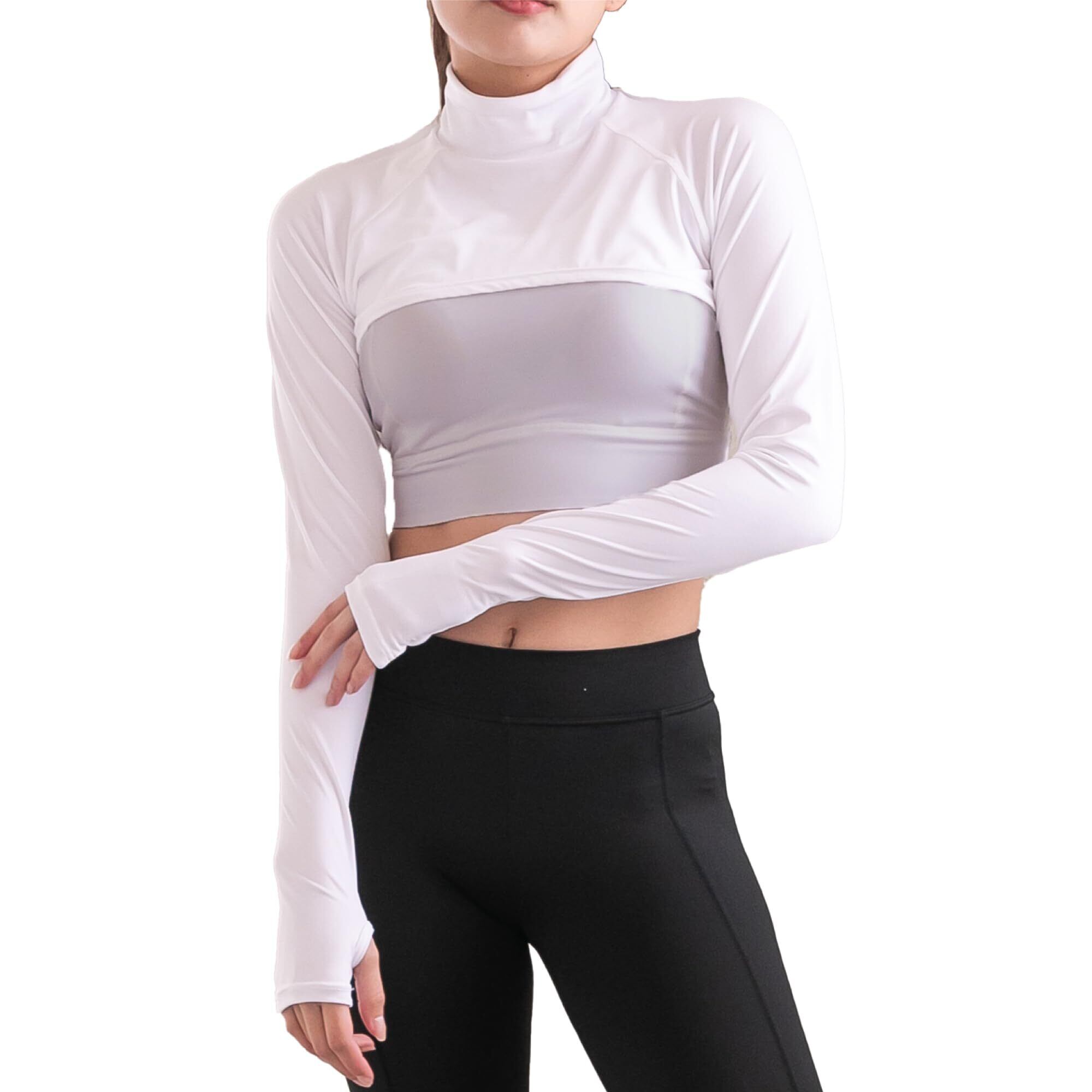 【在庫処分】[グラモア] YOGA by glamore ハイネックアームカバー UVカット 吸汗速乾 伸縮性 ストレッチ 日焼け防止 着るアームカバー ボレロ インナー アンダー レディース 黒 白 Free FT0477 | SmartLiving+