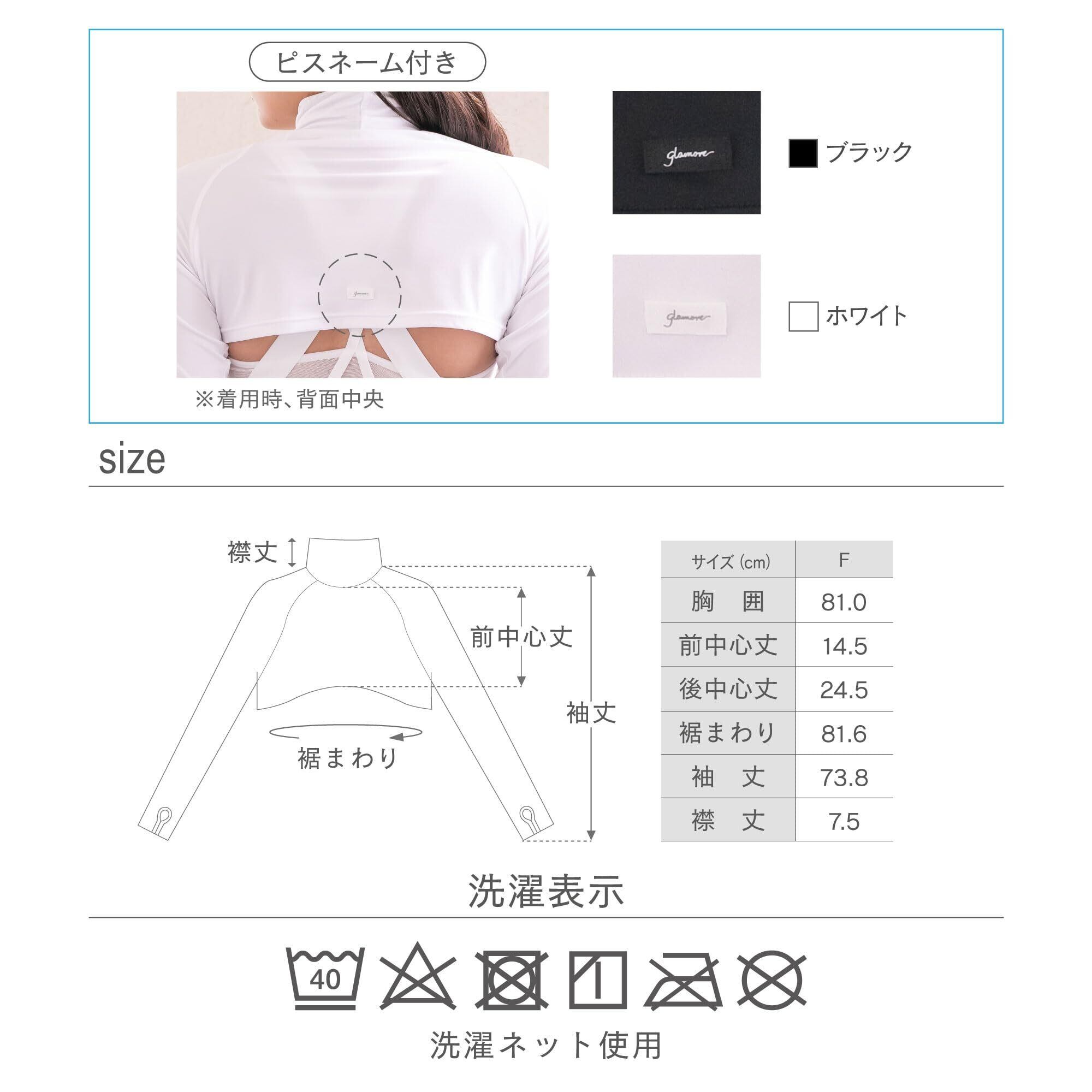 [グラモア] YOGA by glamore ハイネックアームカバー UVカット 吸汗速乾 伸縮性 ストレッチ 日焼け防止 着るアームカバー ボレロ インナー アンダー レディース 黒 白 Free FT0477