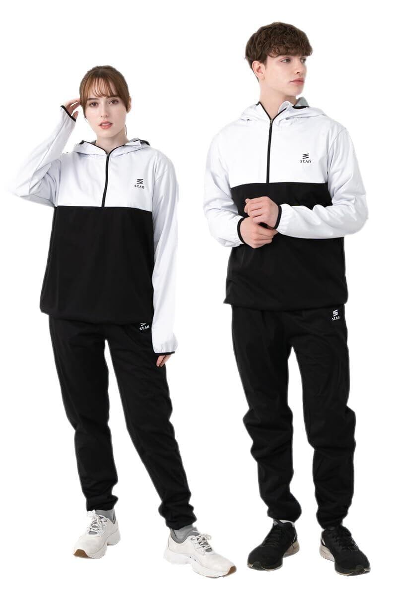 [StAn] 朝倉未来選手着用 サウナスーツ 首から胸までのフロントジップ 上下セット 洗濯可 男女兼用 大きいサイズ ウインドブレーカー [プルオーバー]