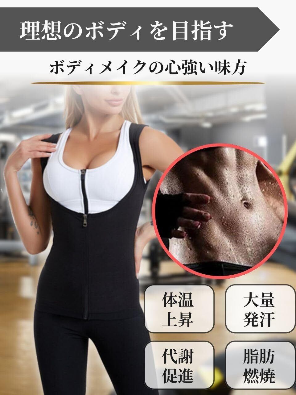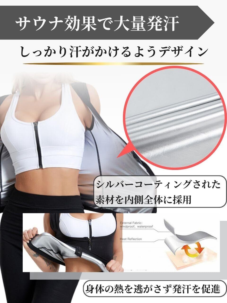 【脂肪燃焼効果の高いサウナスーツ】ダイエットやボディメイクをサポートするレディースサウナスーツのタンクトップです。ジョギング・ジム・ヨガ・ランニングなど、あらゆるトレーニングシーンで脂肪燃焼を促進し、体重減少・お腹痩せ・背中痩せなど理想のシェイプアップを目指せます。体温が上がることで基礎代謝が一時的に上昇し、カロリー消費が増える可能性を高めてくれます。そのため、普段の運動にこのサウナスーツを取り入れるだけで新陳代謝がアップし、ダイエット・減量効果を向上させます。