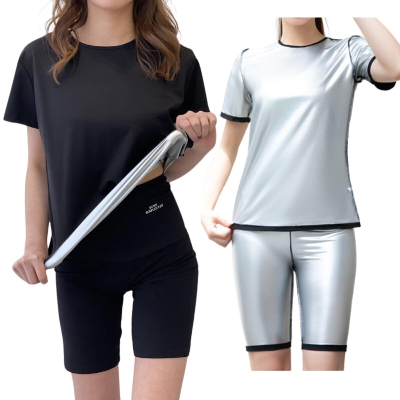 【数量限定】[Gorcre] サウナスーツ レディース 上下 2点 セット 小さいサイズ 半袖 ショートパンツ インナー 発汗 ダイエット トレーニング ウェア 大量発汗 洗濯可 | SmartLiving+