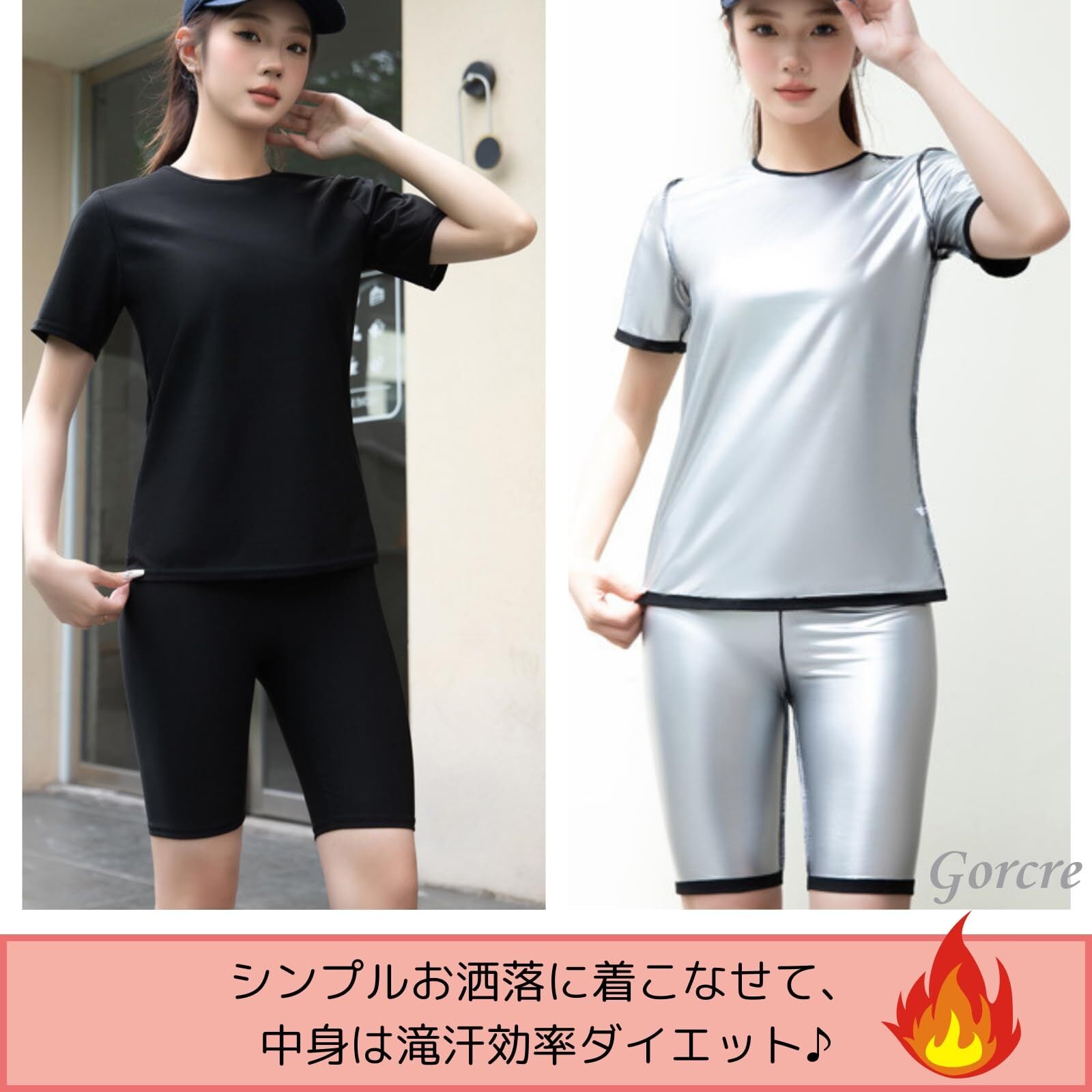 [Gorcre] サウナスーツ レディース 上下 2点 セット 小さいサイズ 半袖 ショートパンツ インナー 発汗 ダイエット トレーニング ウェア 大量発汗 洗濯可