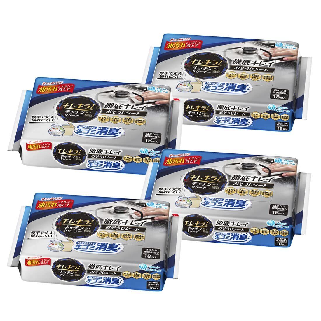 エリエール キレキラ! キッチンクリーナー 72枚(18枚×4個) 捨てるだけで生ゴミ消臭 徹底キレイ おそうじシート 【 限定】 まとめ買い