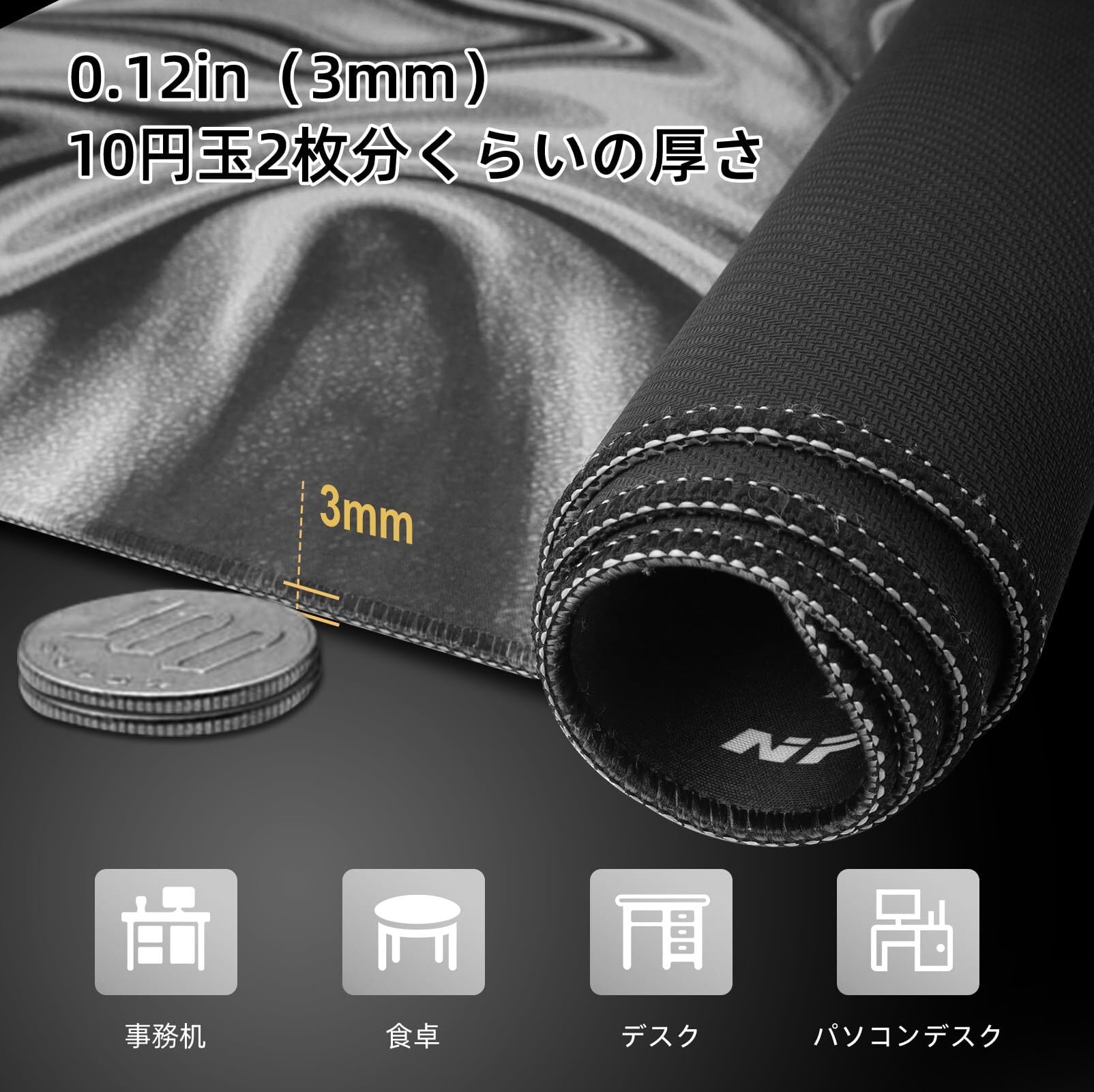 NPET N110 マウスパッド 超大型 サイズ ゲーミング キーボードパッド 90cm×43cm×0.3cm 滑り止め レーザー&光学式マウス対応 クロス 表面 デスクマット 撥水 マウス マット ゴム底 耐洗い表面 快適操作性 黒色
