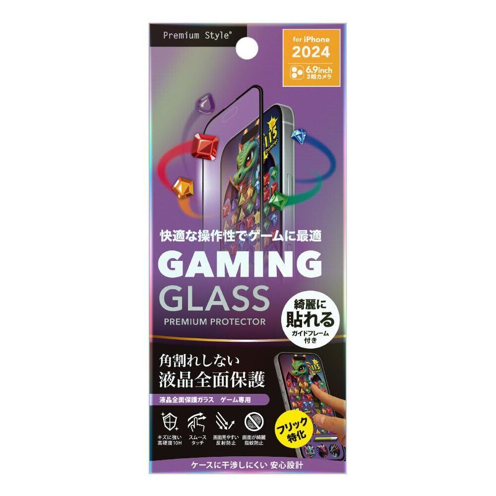 iPhone16ProMax iPhone 16ProMax 用 液晶全面保護ガラス 角割れ防止PETフレーム ゲーム特化/指紋・反射防止 PG-24DGLF05GM