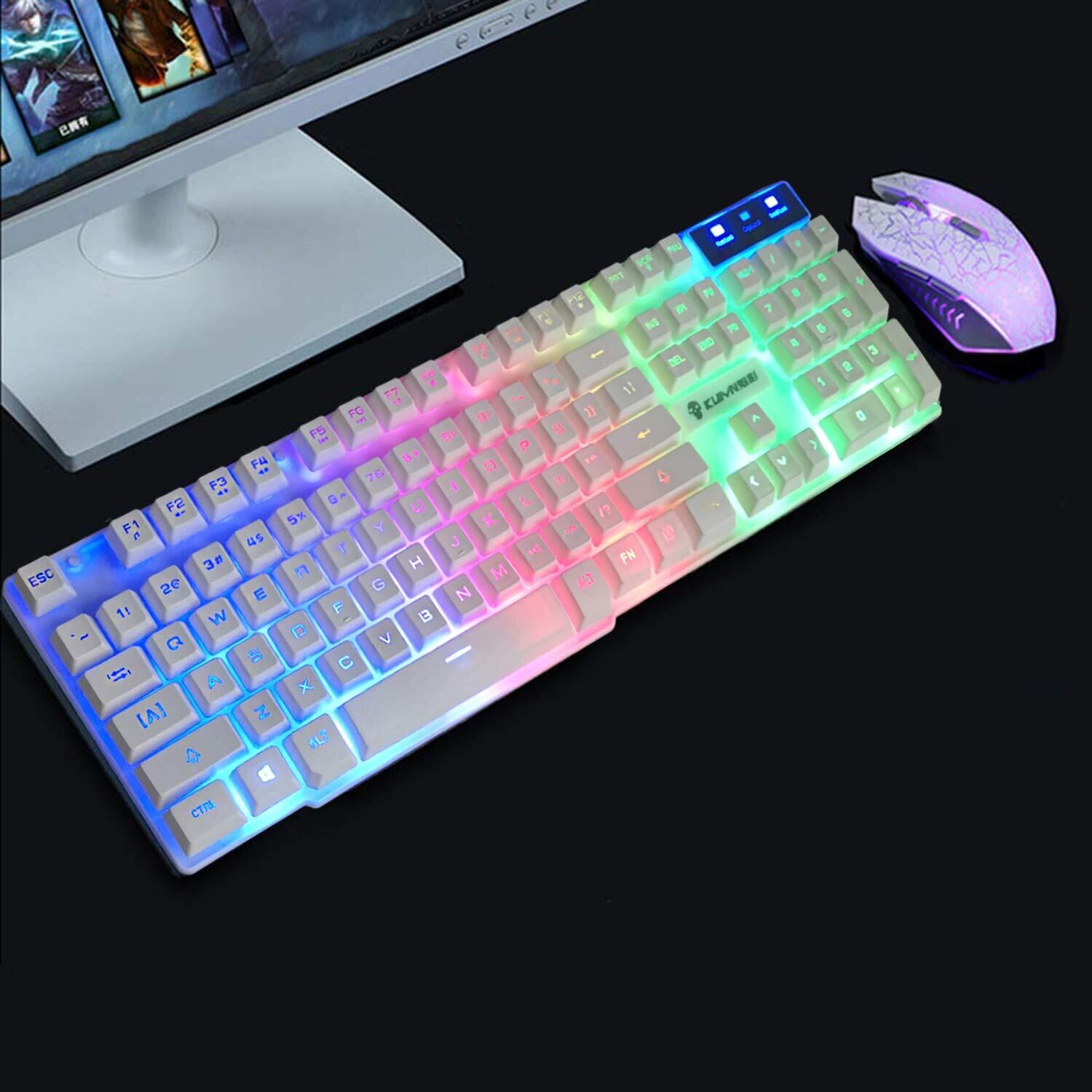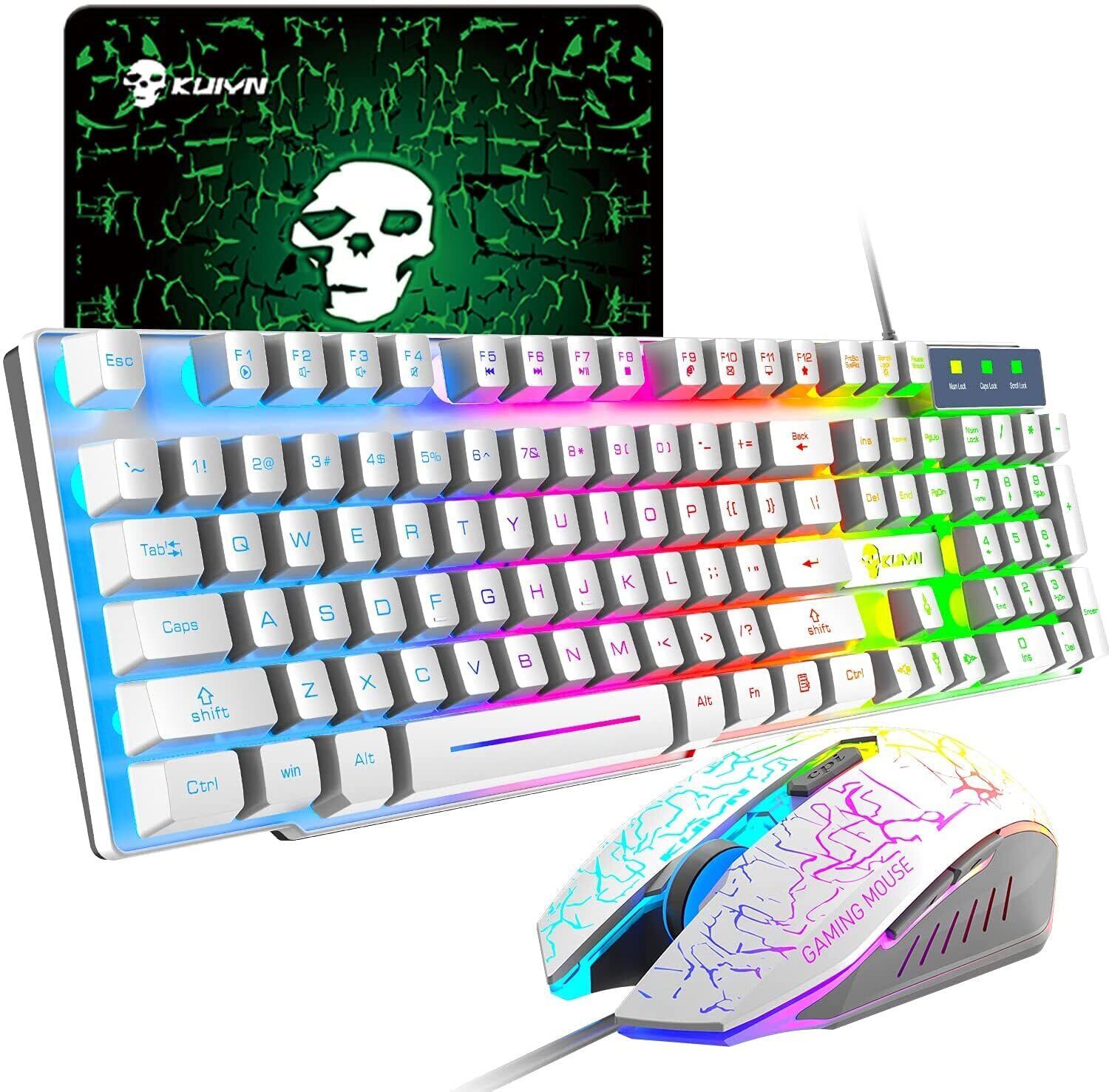 LexonTech x KUIYN T6ゲーミングキーマウスセット マウスパッド付き 赤軸 LEDバックライト104キー(US配列) USBメンブレン式 有線 高耐久 防衝突 防水多機能マルチメディアキー 2400DPI調整でき 6つのボタンありマウス Windows/Mac/Switch/PS4/PS5 IOS対応 仕事PC用/自宅ゲーム用 日本語説明書付き (ホワイト)