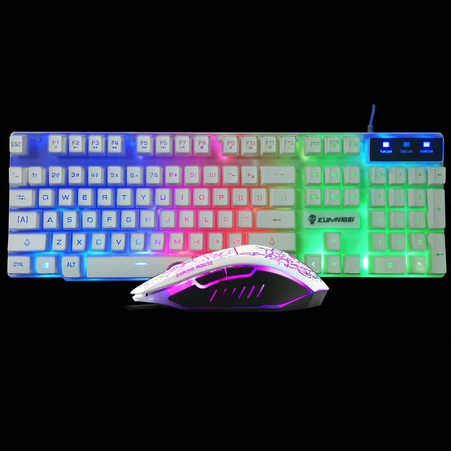 【人気商品】LexonTech x KUIYN T6ゲーミングキーマウスセット マウスパッド付き 赤軸 LEDバックライト104キー(US配列) USBメンブレン式 有線 高耐久 防衝突 防水多機能マルチメディアキー 2400DPI調整でき 6つのボタンありマウス Windows/Mac/Switch/PS4/PS5 IOS対応 仕事PC用/自宅ゲーム用 日本語説明書付き (ホワイト) | SmartLiving+