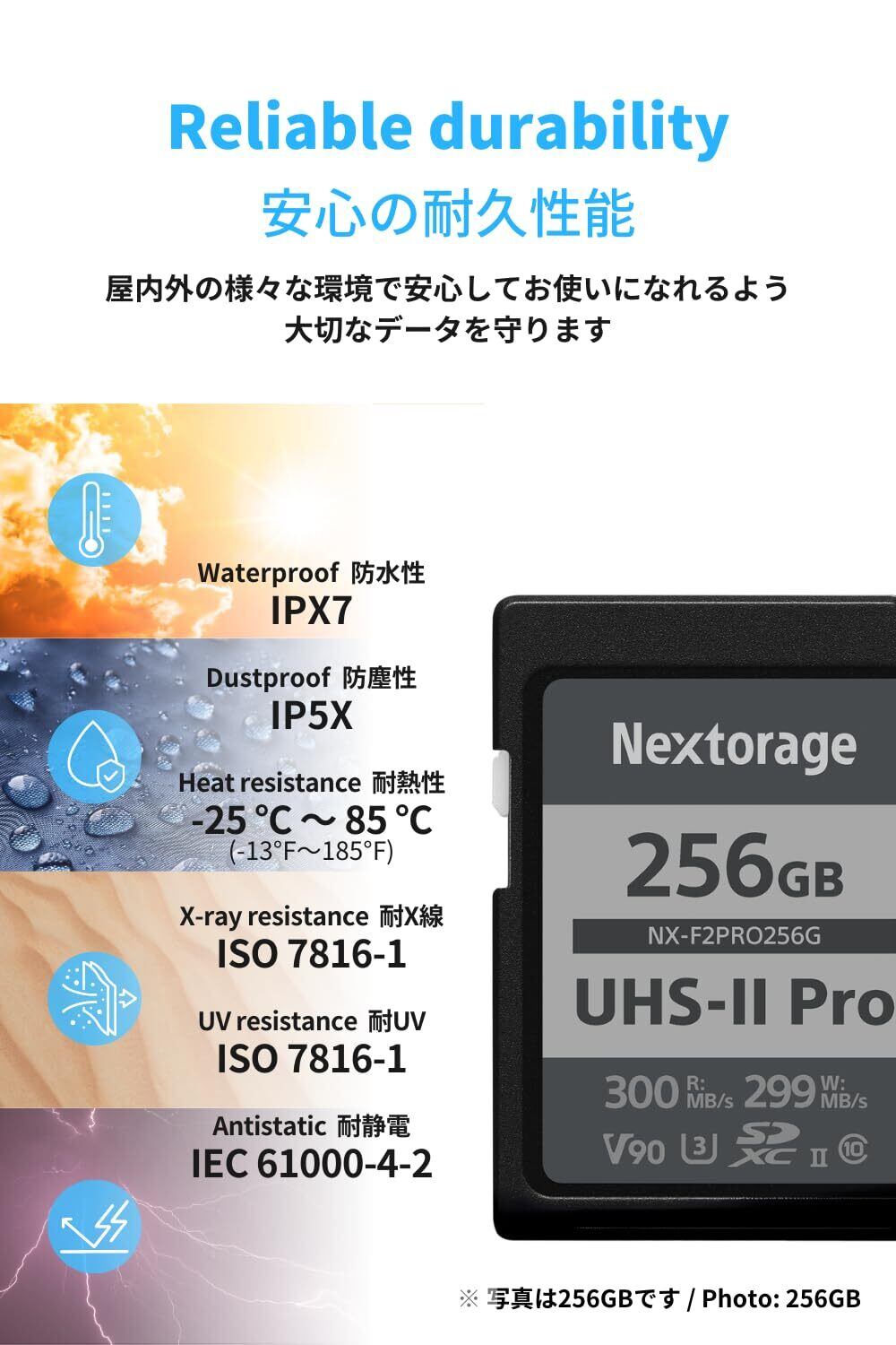 Nextorage 日本メーカー UHS-II V90 256GB SDXC SDカード 最大読出し速度300MB/s 最大書込み速度299MB/s 高性能pSLCフラッシュメモリ搭載 高速連写 4K/8K録画 NX-F2PRO256G ネクストレージ メモリカード
