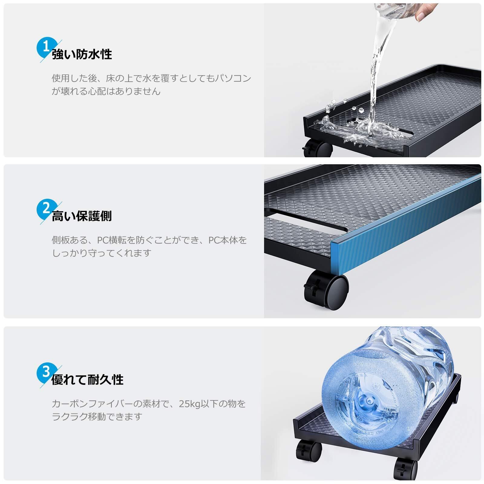 【PC周りやデスクのお掃除が楽しくなる】キャスターが付いていると重いPCでも楽に移動ができ、さらに掃除やメンテナンスもできるからです。女性一人でも簡単に移動できるワゴンタイプのcpuスタンドです。
